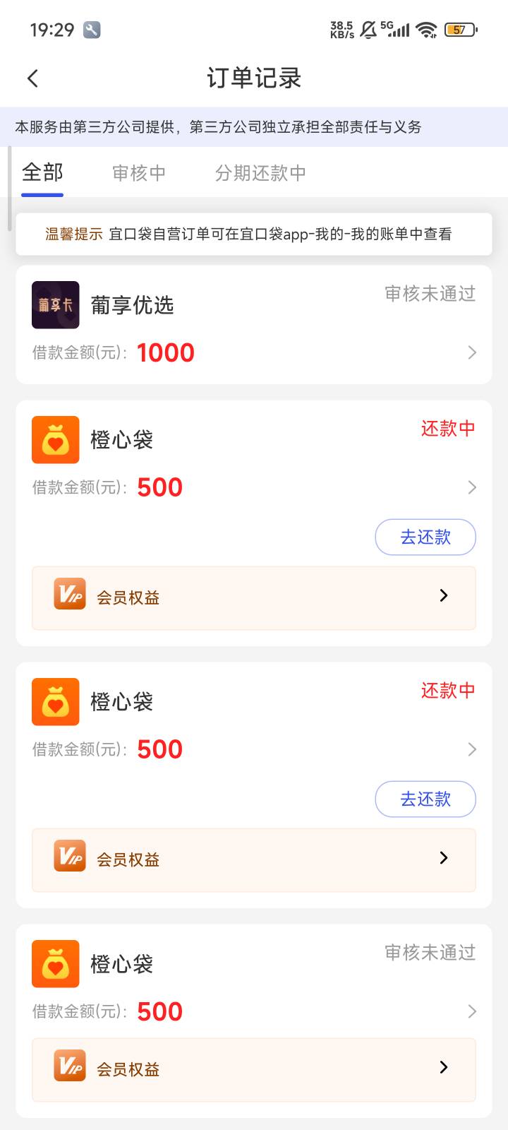 宜口袋本体的橙心袋第三笔到账,17号申请。刚到账,15号申请的第二笔,17号还款日到的