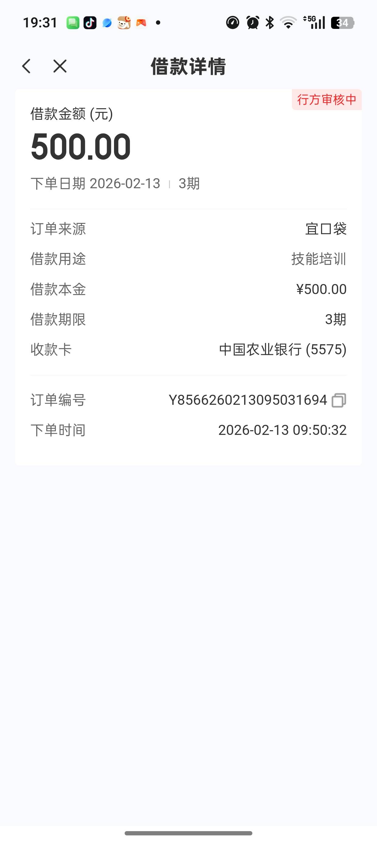 13号申请的刚刚终于到账 等了6天 这里显示还在审核中