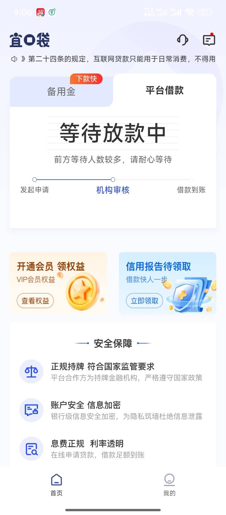宜口袋第二笔,cxd有一笔,申请一千五,10分钟变成500开会员五分钟下款了,没扣56会员