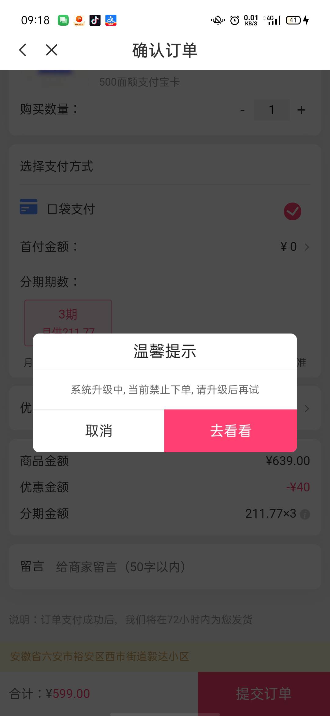 ykd有没有老哥知道,出来立减金下单提示这样,不能下单