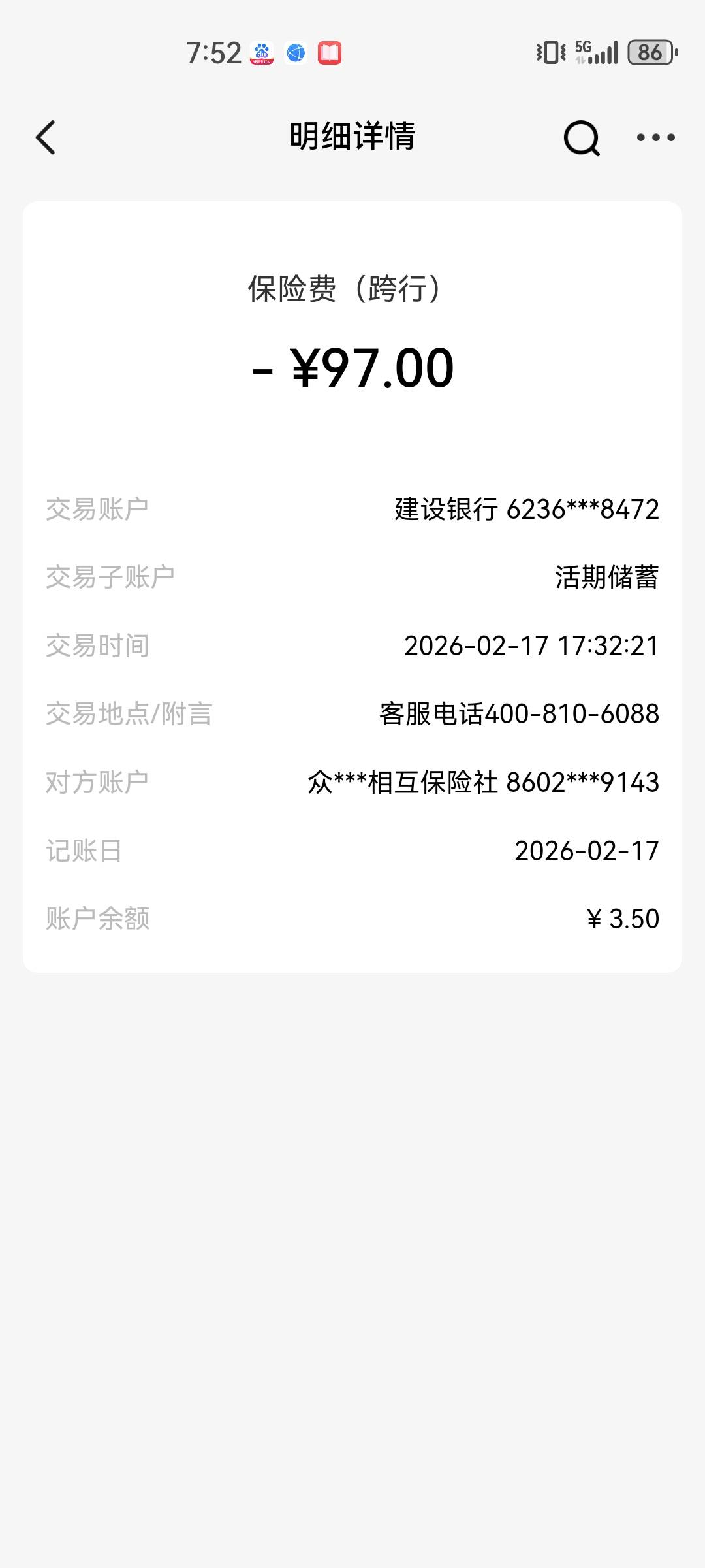众惠财产相互保险社 无缘无故扣钱从来没开过 放一百块到卡里没几分就扣了 抢钱