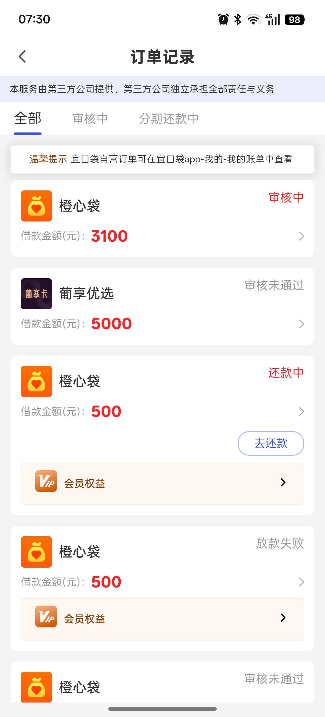 橙心贷 18号还款 但是我15号就有专项资金申请借款了、然后会员也是自己主动支付 没
