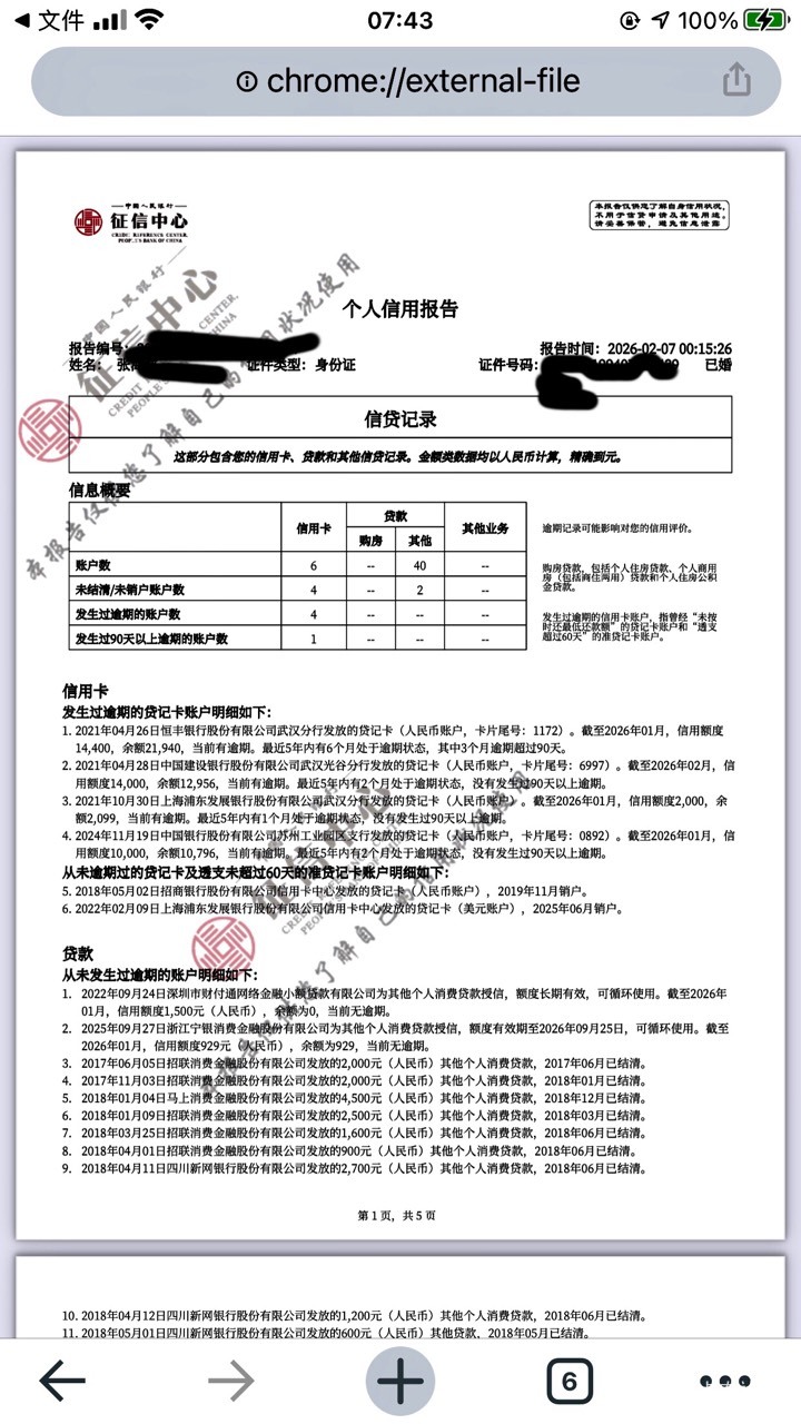 管理加精   拍拍贷有当逾  天选之子下款了   ykd跟jdd有额度借款一直失败    看到老哥发的拍拍贷  就试了一下  2000分四笔五百秒下款   太不容易了   附上二月刚打的征信报告