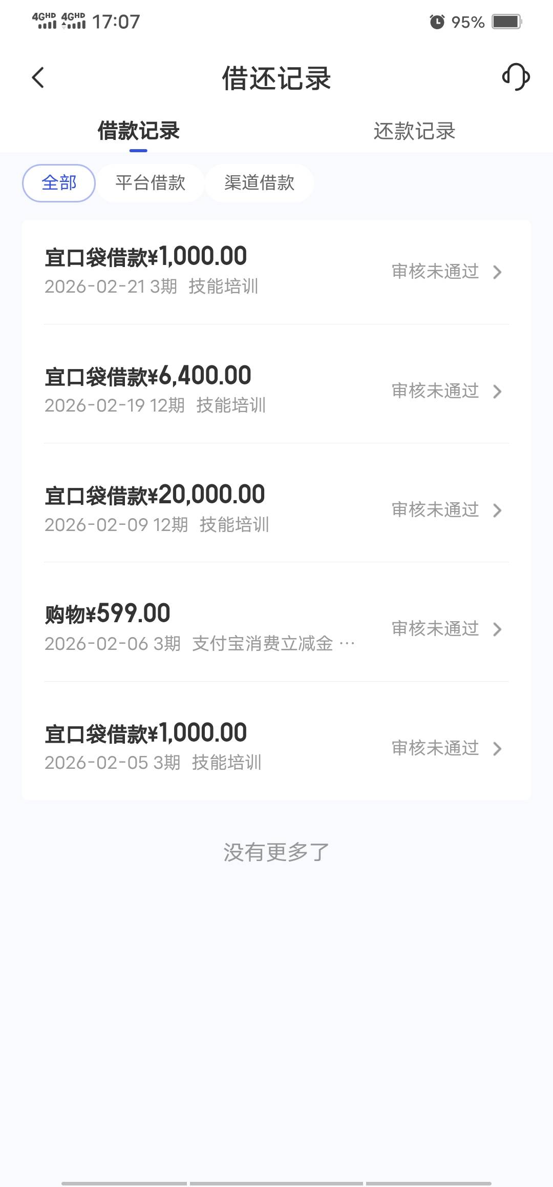 2万额度申请几次审核通不过 然后就变成宜口袋1000 橙心袋1000 还通不过