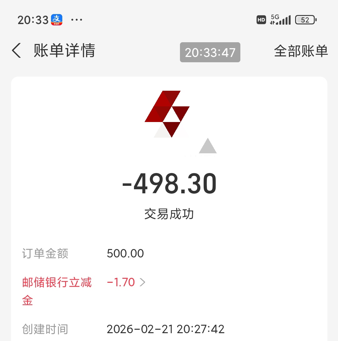 支付宝大小号收款广西邮储500-1.7