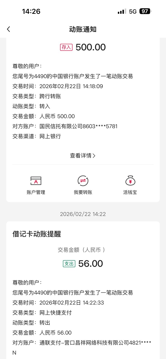 我也到了,没有短信通知