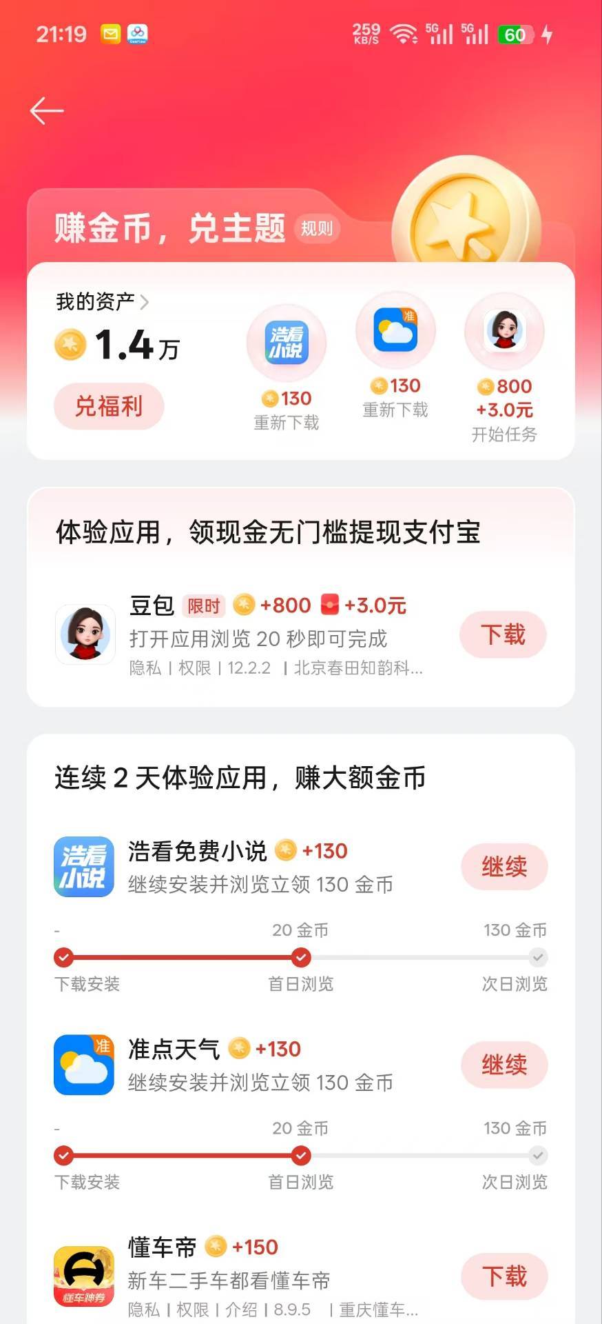OPPO主题商店,左上角钱袋点进去,有这个任务的下载浏览20秒,3元秒到
