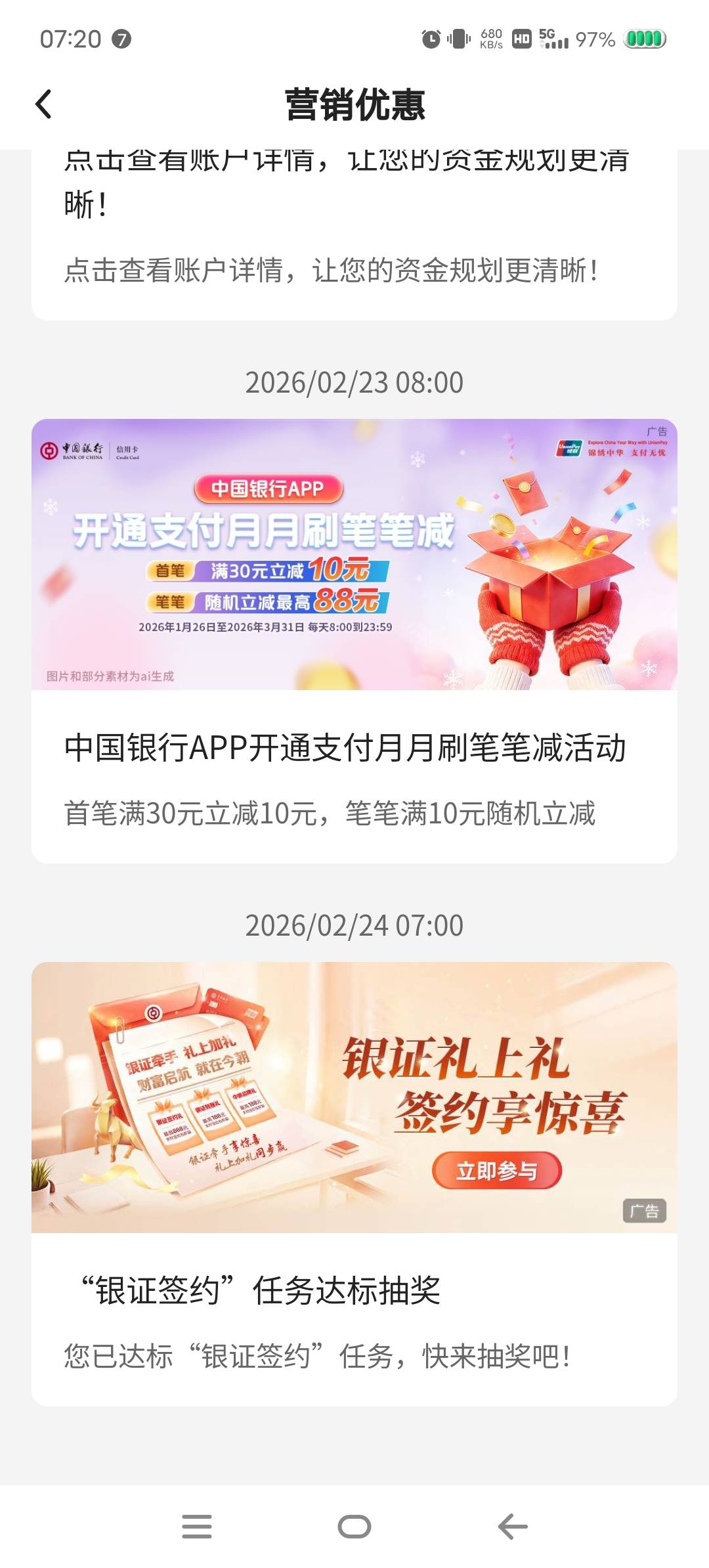 究极大老黑 发表于 2026-02-24 08:38 不用中国银行手机 APP 里面抽奖,里面那个银证签约