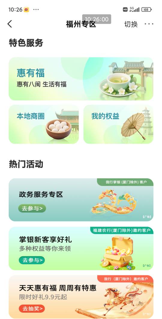 农行福建天天惠有福周周有特惠活动