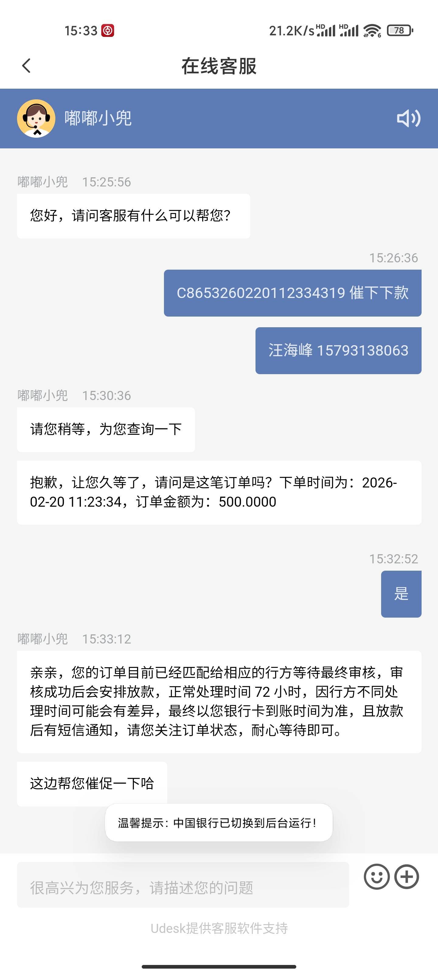 历时4天下了,20号申请,昨天宜口袋逾期了,刚催客服呢,一看下款了,秒扣一期账单,和56会员费,就200多了