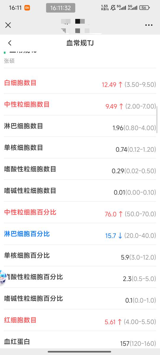 发炎了,我乱说的,白细胞偏高应该是发炎吧