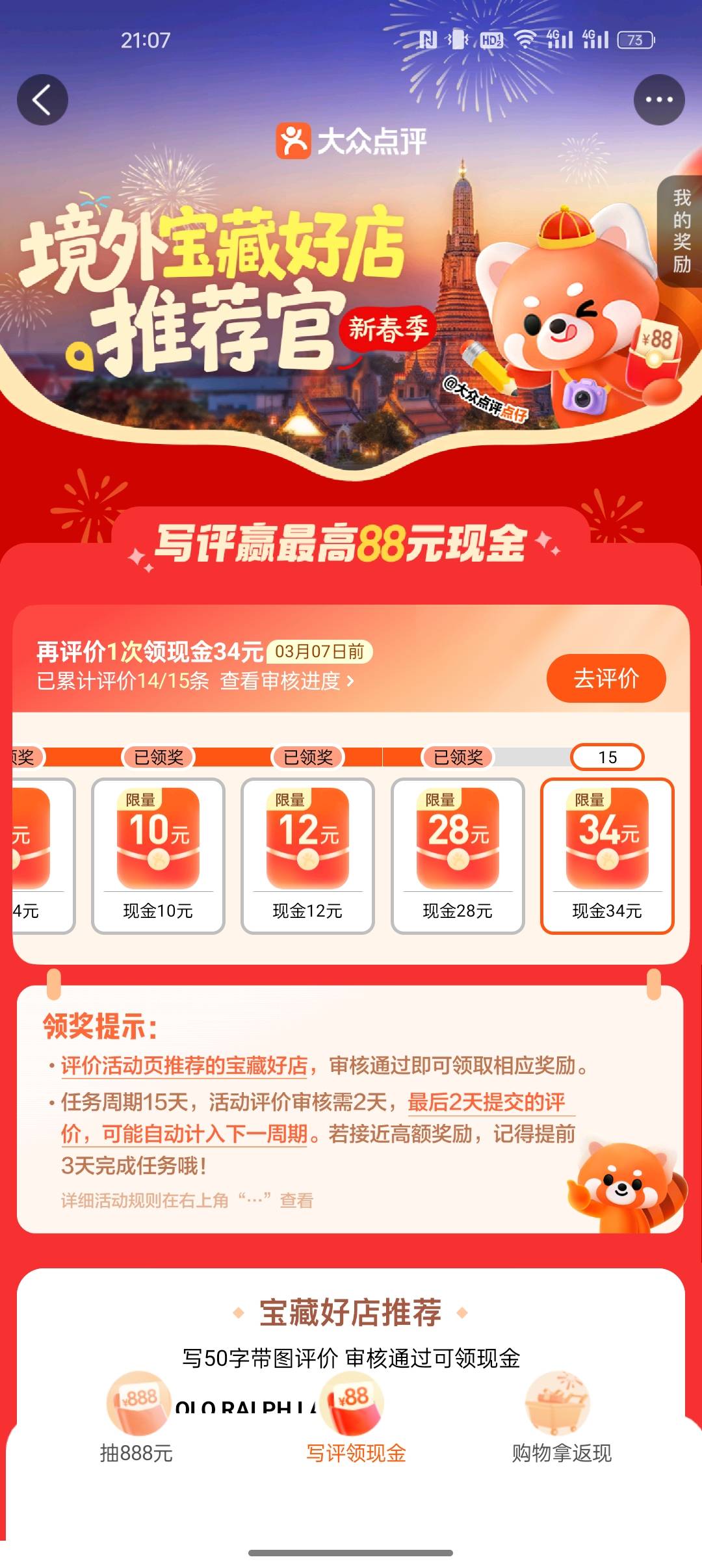 大众点评境外评价活动稳定88!老哥们快冲
