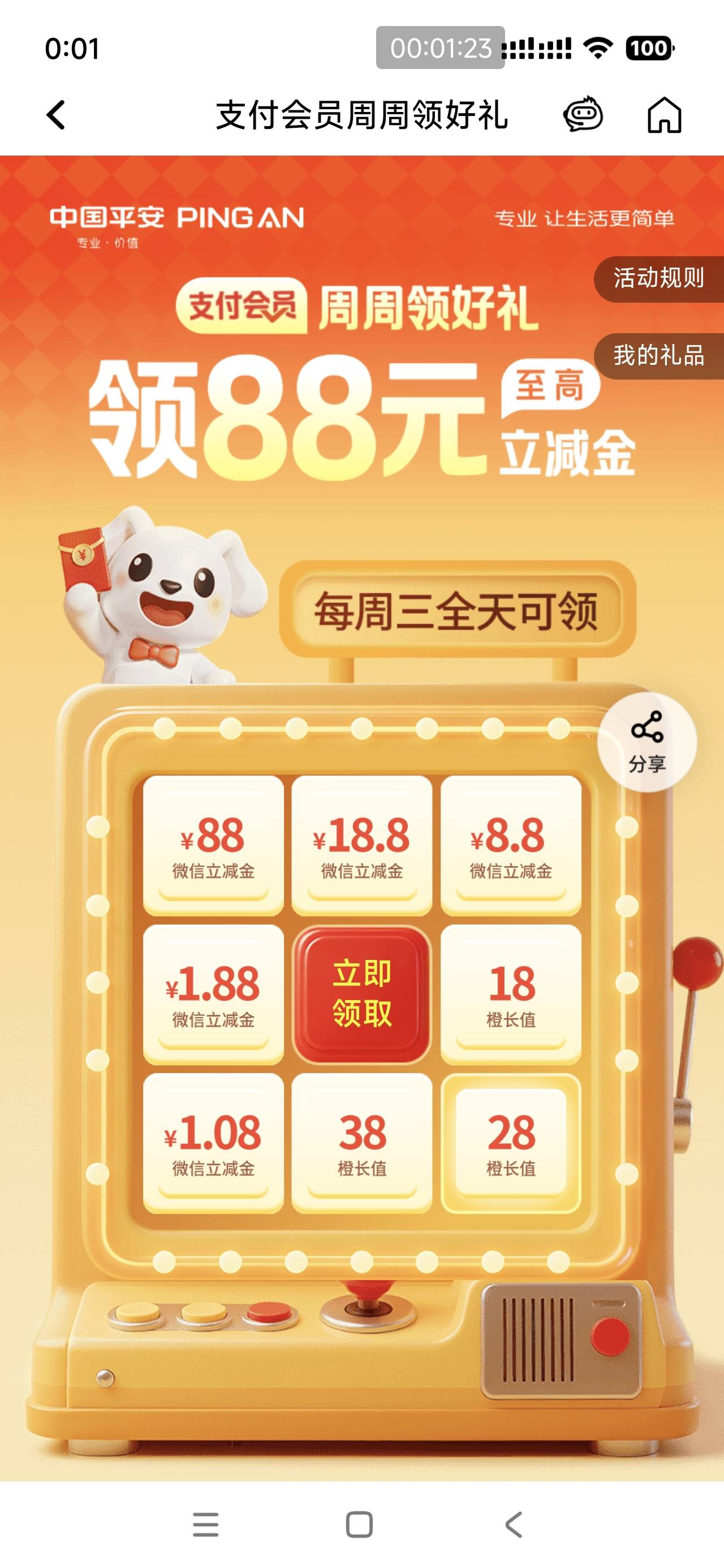 平安银行支付会员周周领好礼活动