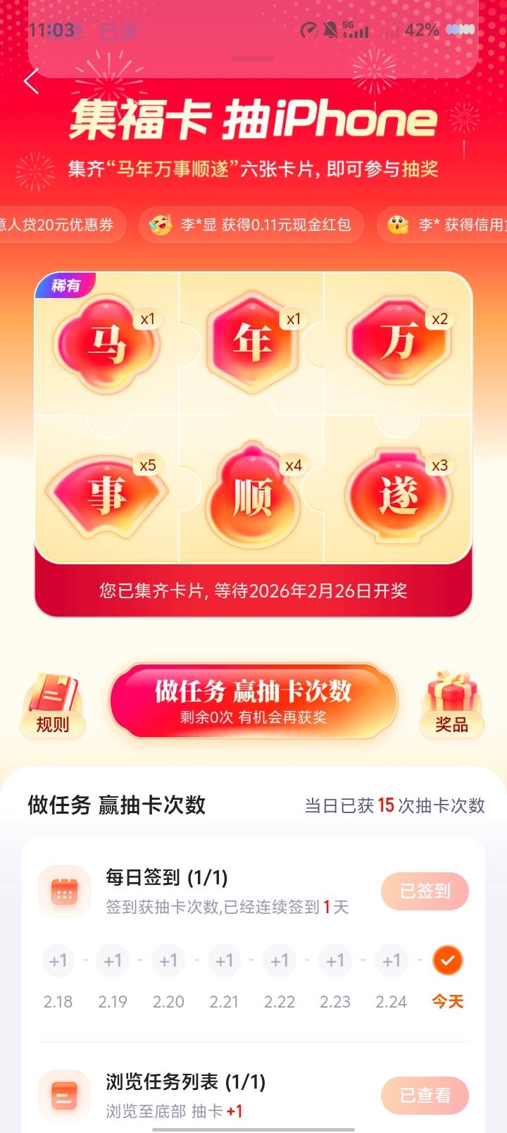 携程就中俩集卡齐了等开奖