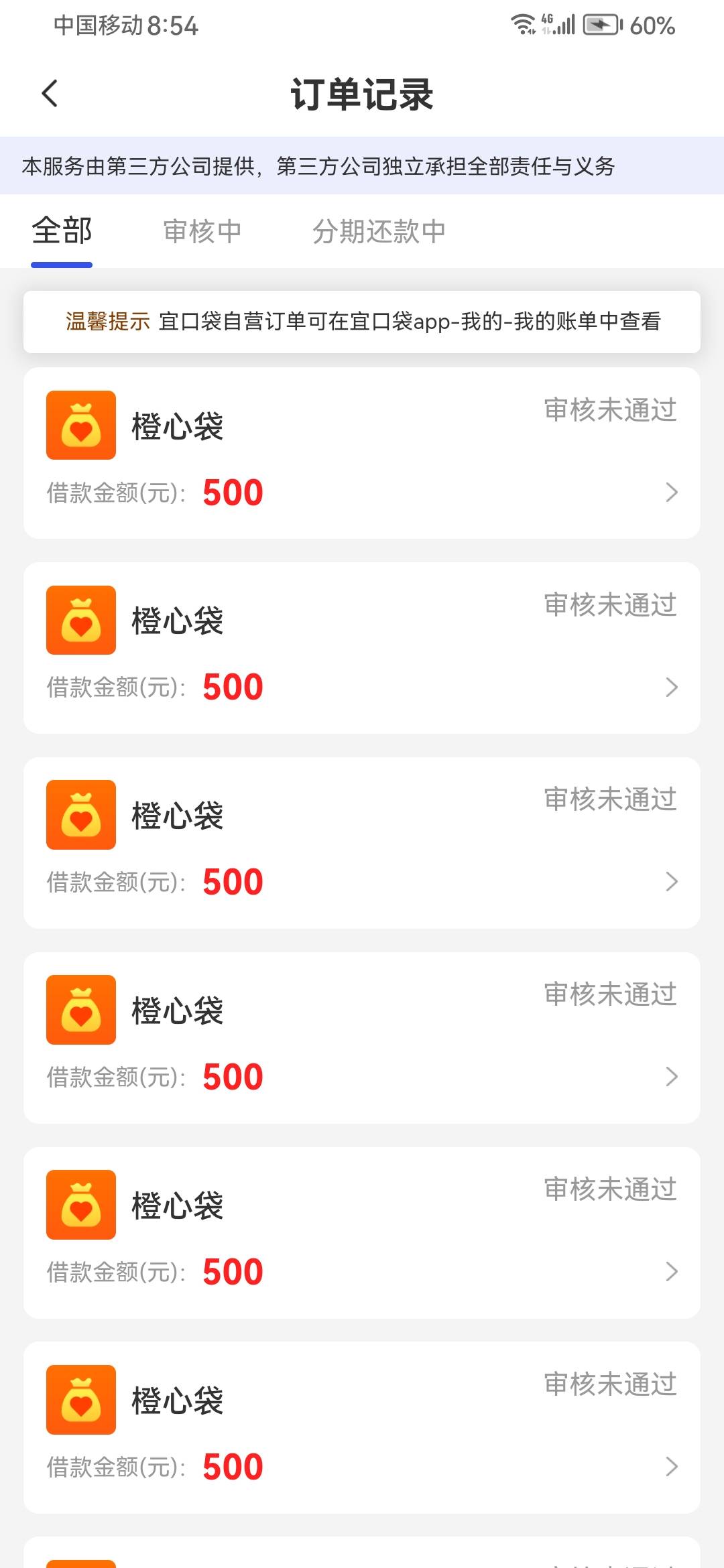 宜口袋没有订单啊 橙心本体有 第二笔三天了能下吗 已经退会员了今天还款日