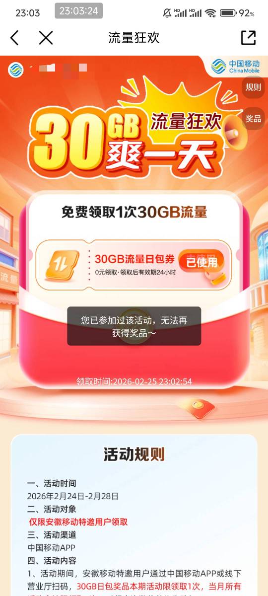 中国移动安徽特邀客户流量狂欢活动
