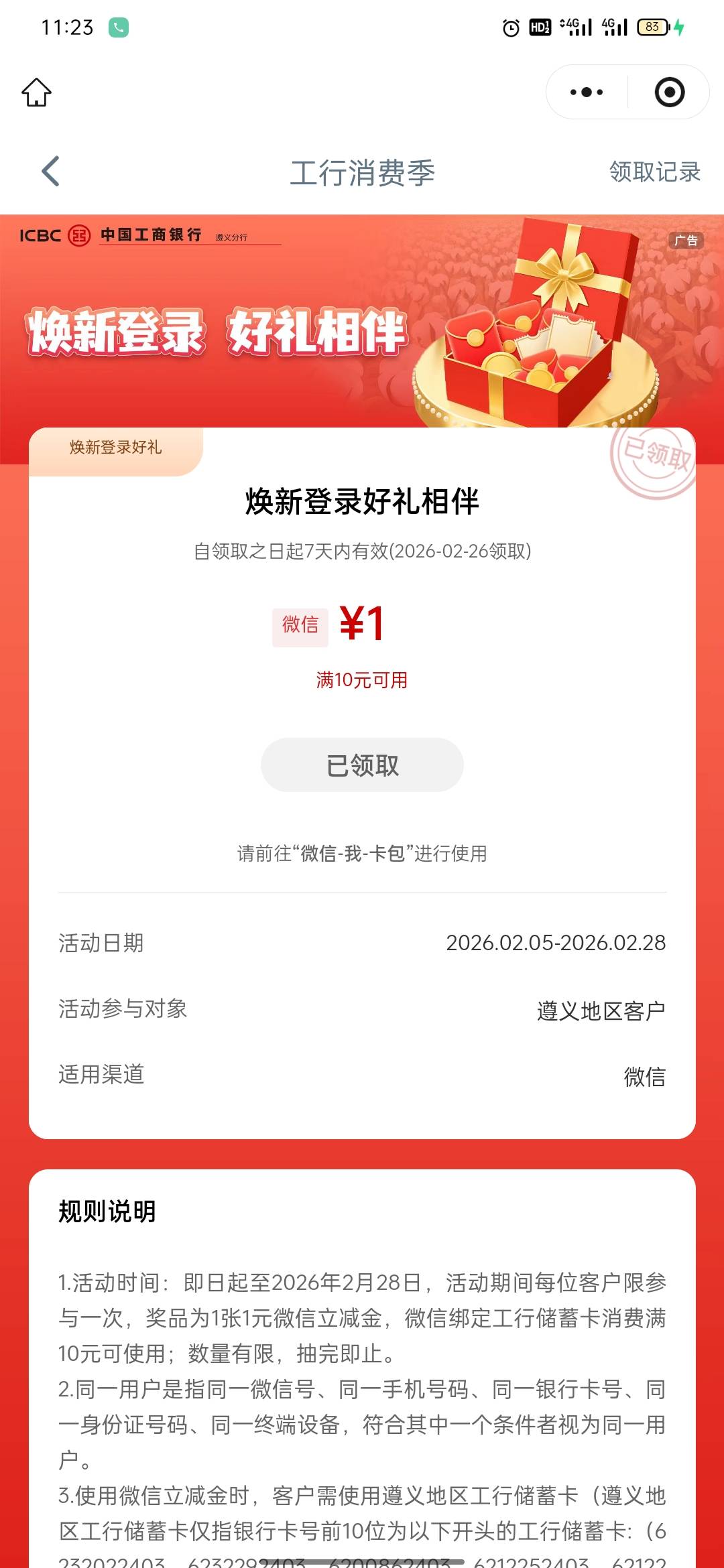 工行遵义消费季焕新登录好礼相伴活动