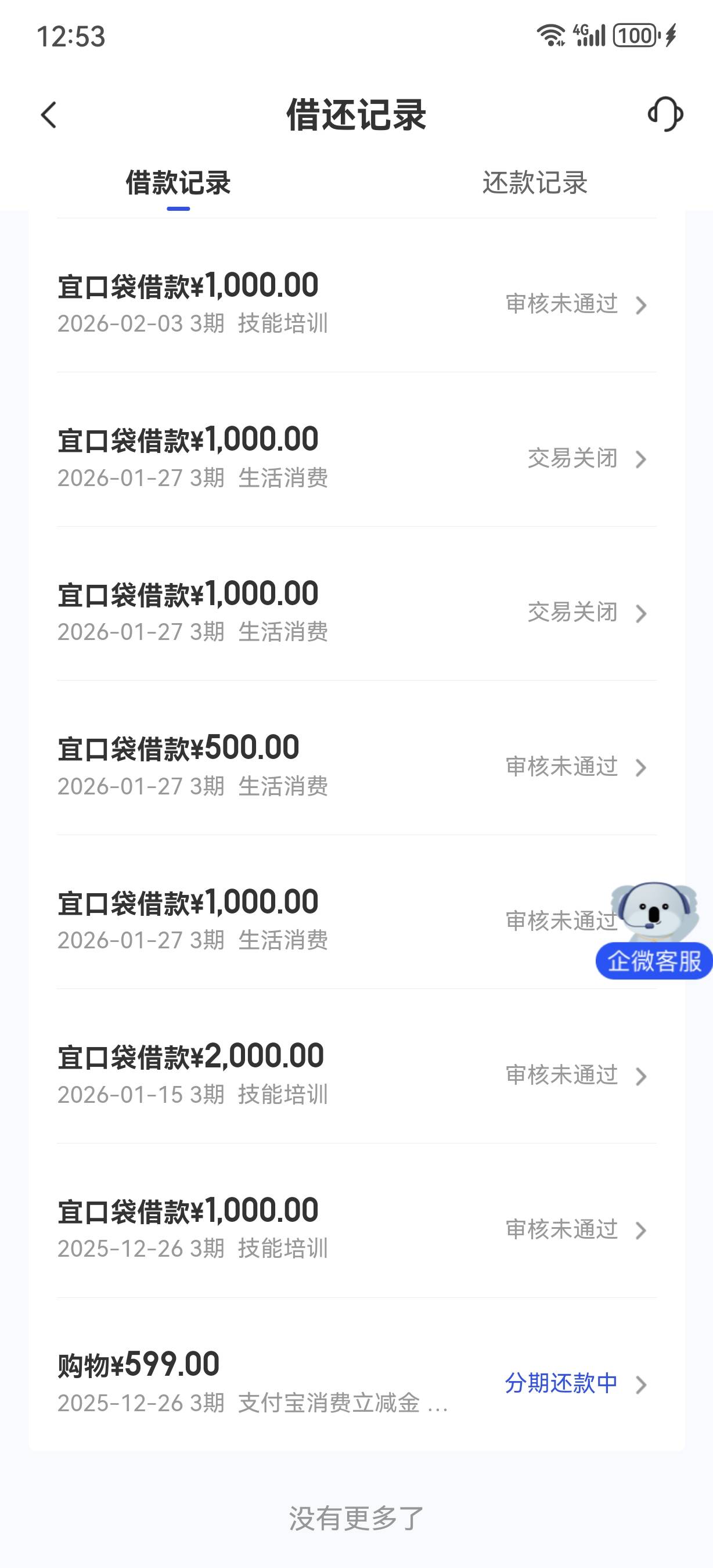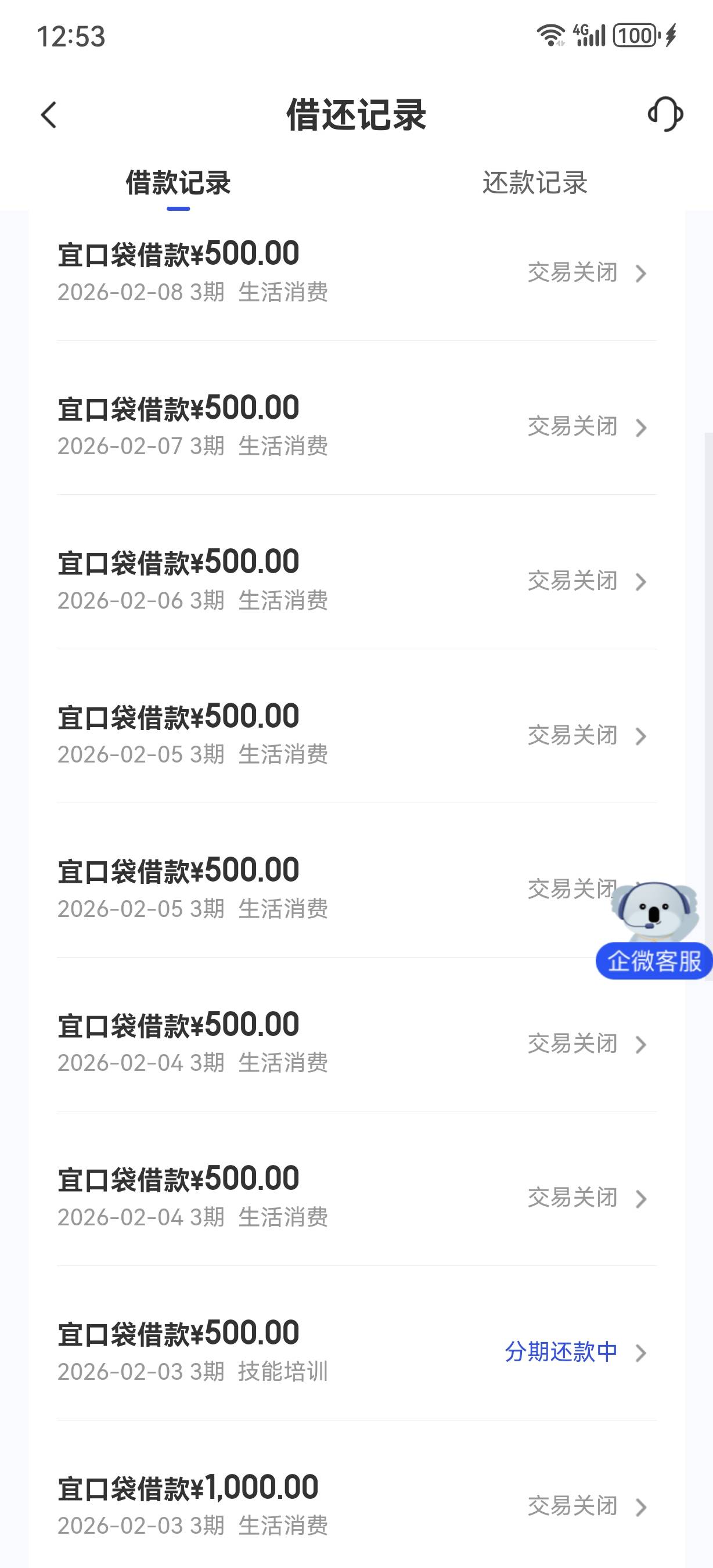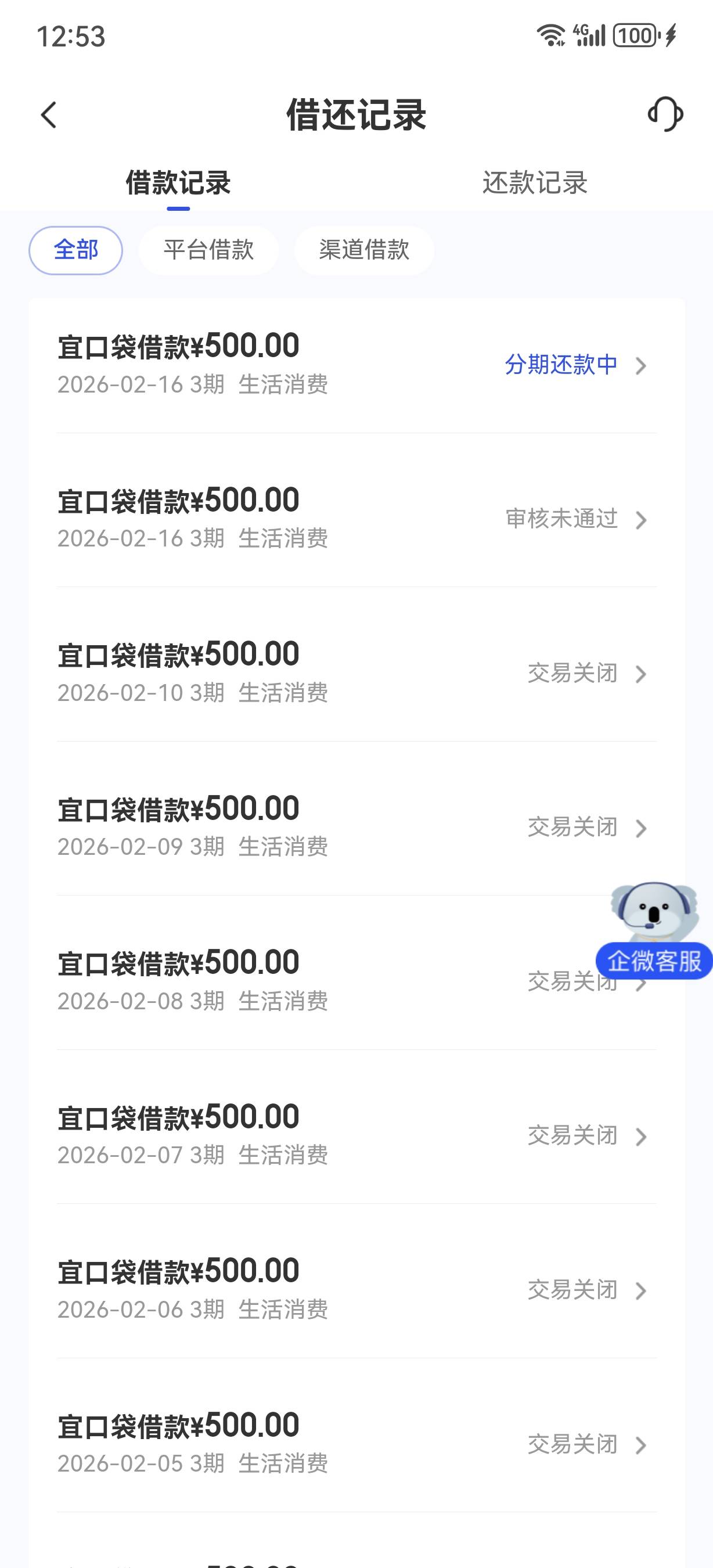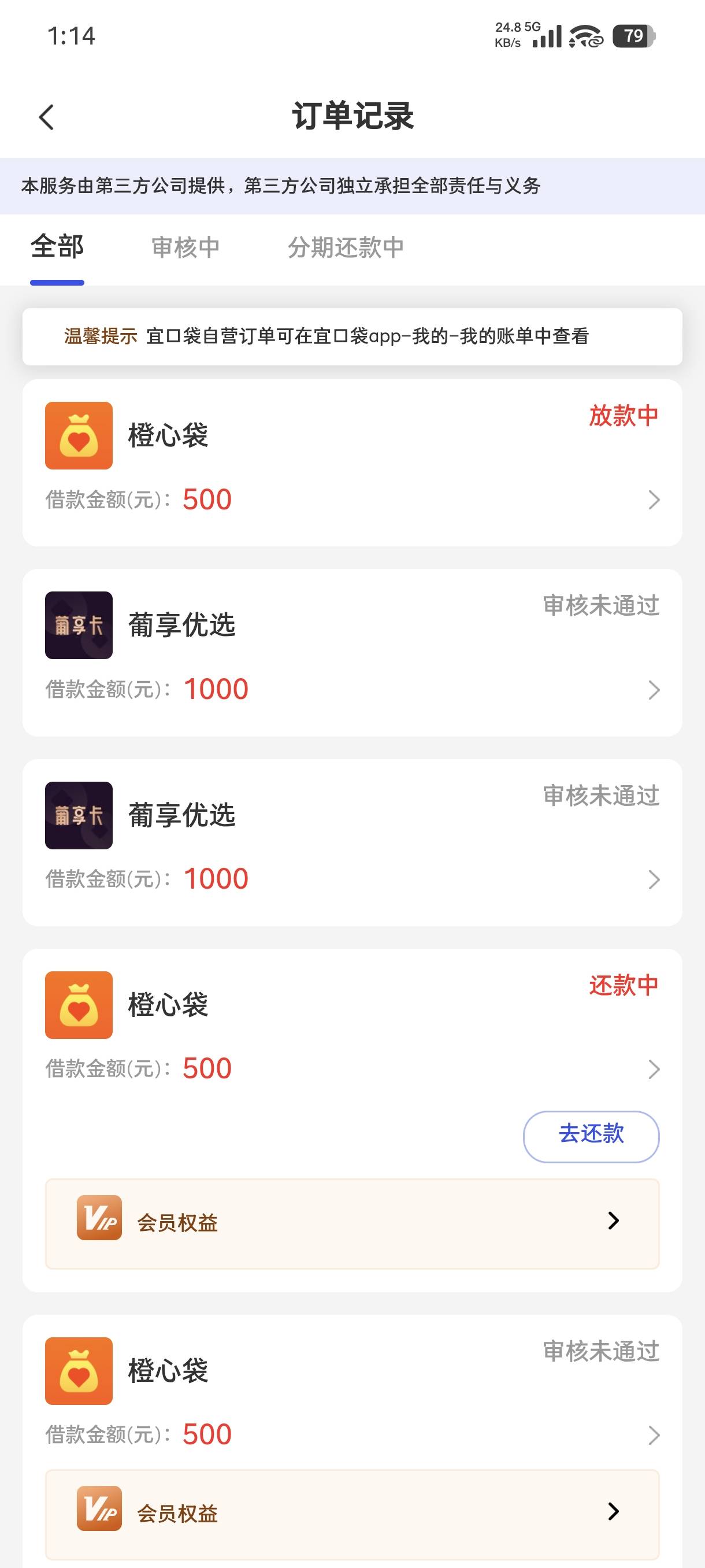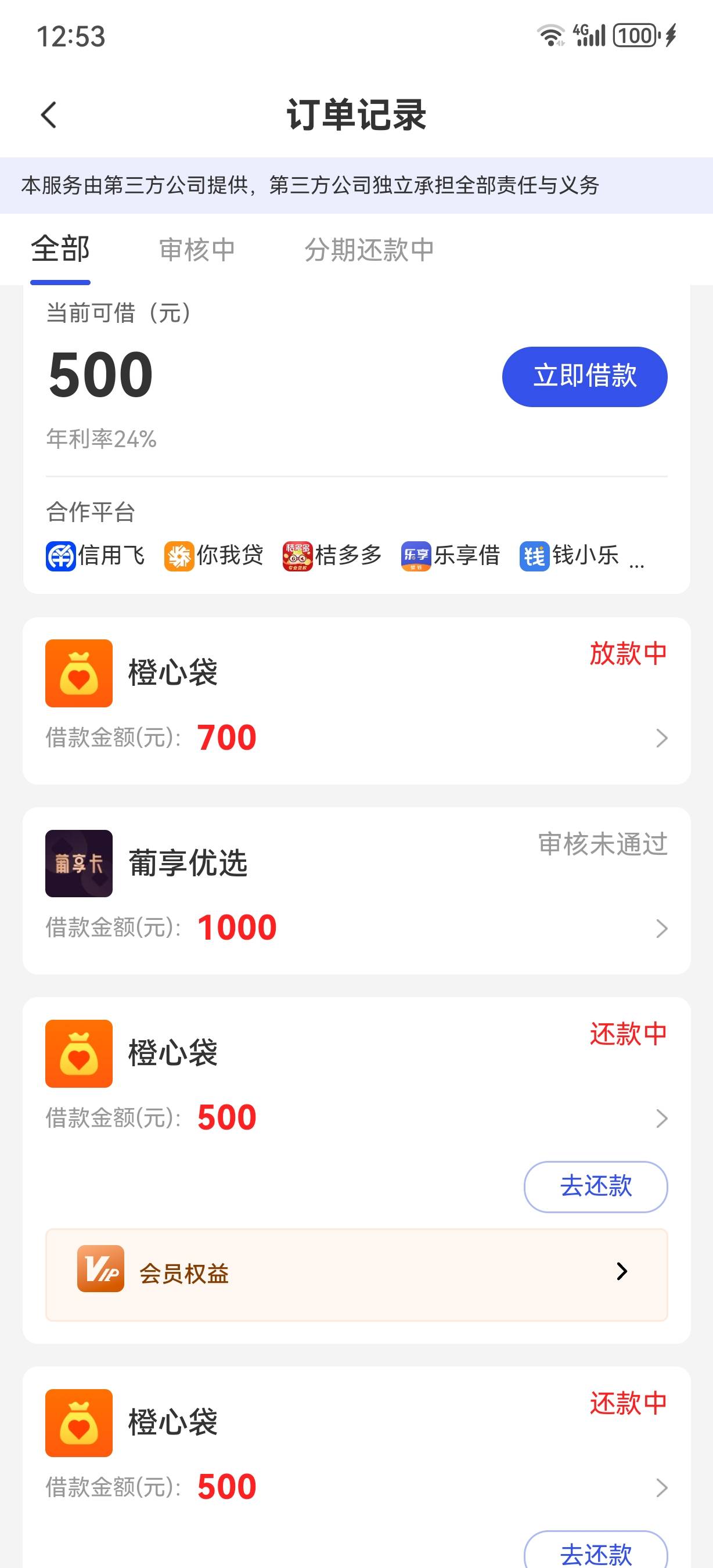 宜口贷今天还款日,又下了第6笔700,然后显示还有500额度可以申请