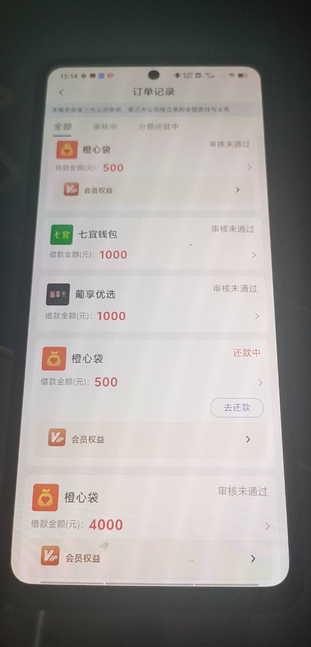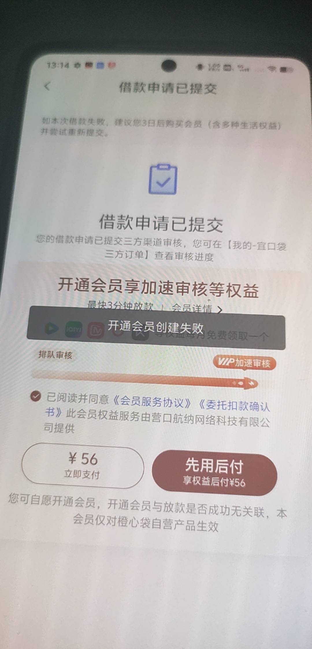这已经是下了第三笔了,又出现了这一笔,但是这一笔开不了会员,今天刚下一笔500橙心贷  请问什么情况