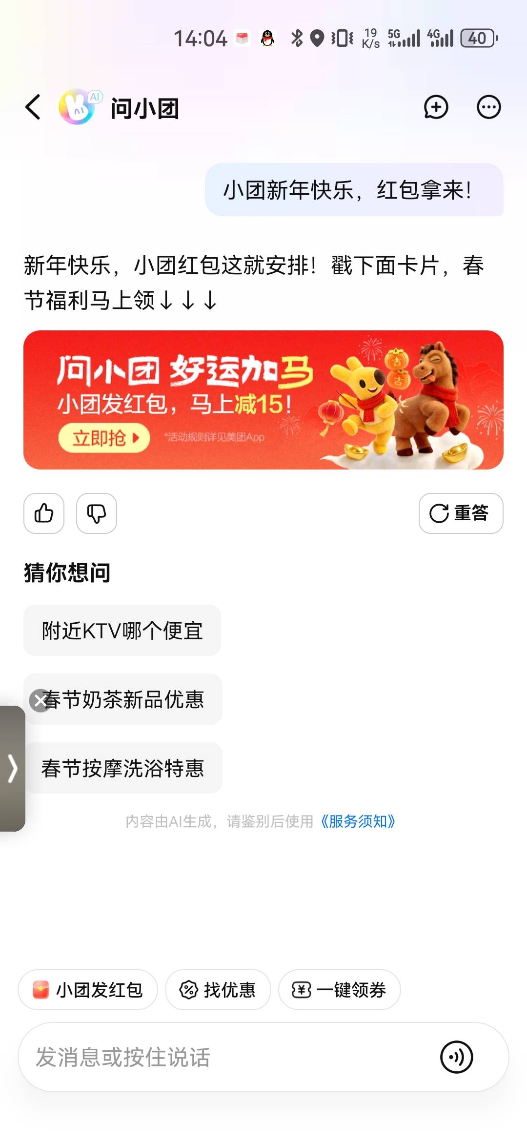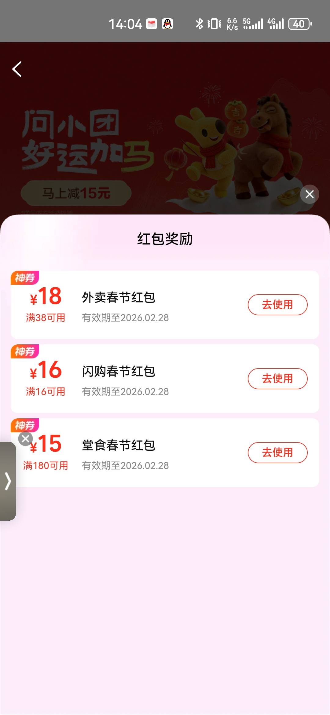 美团问小团好运加马外卖春节红包活动