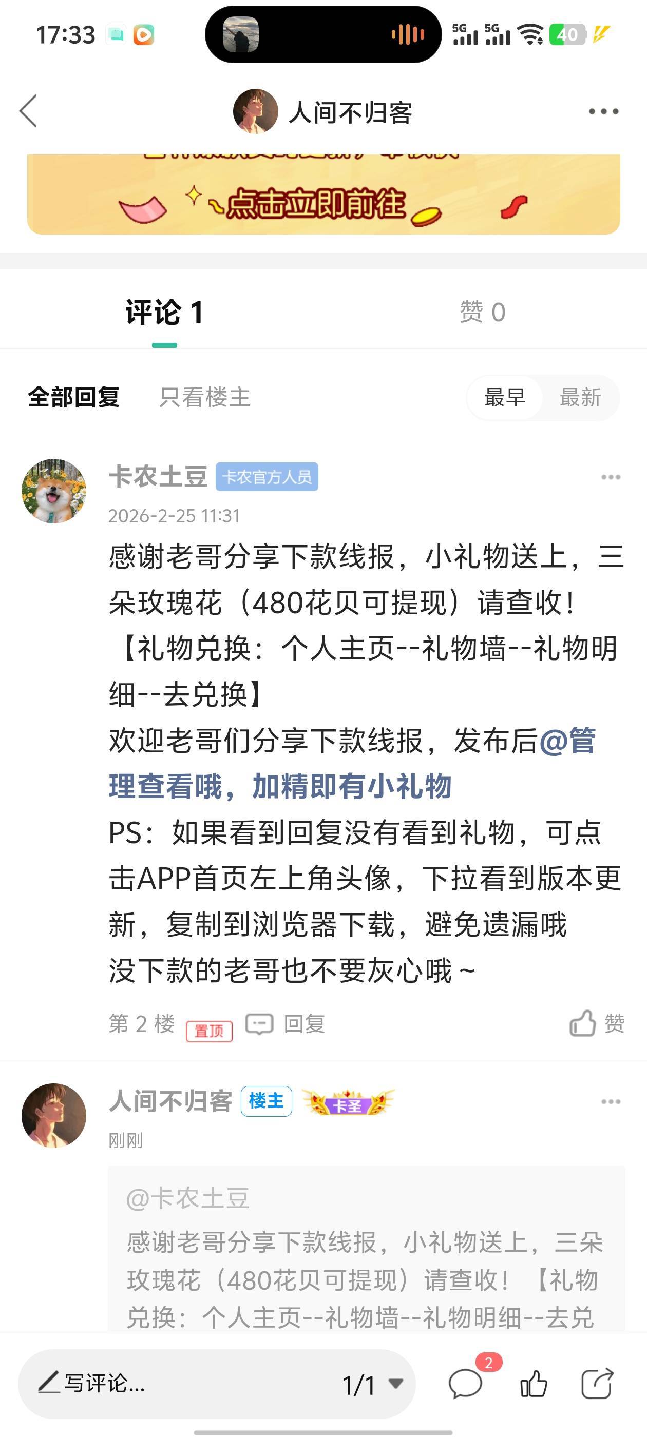 卡农土豆 发表于 2026-02-26 17:38 老哥,礼物是需要兑换成花贝的哈,【礼物兑换:个人主页--礼物墙--礼物明细--去兑换】