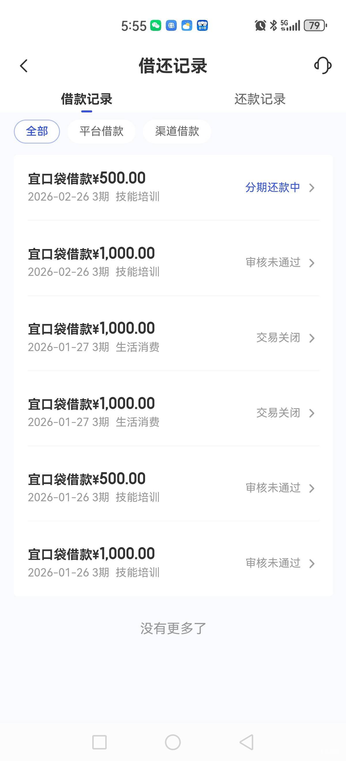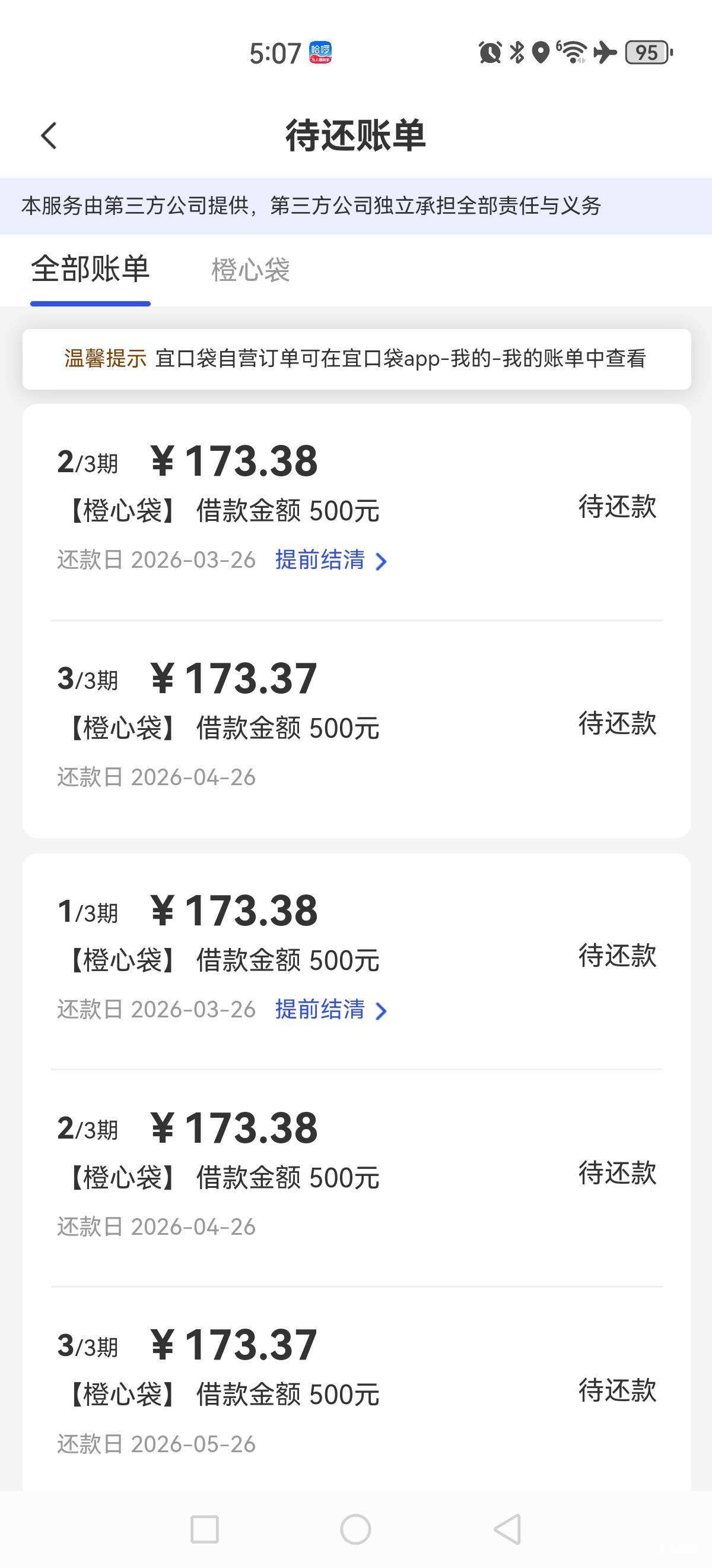 还款日,橙子和宜口袋各500,一共1000下了,各扣了50多会员