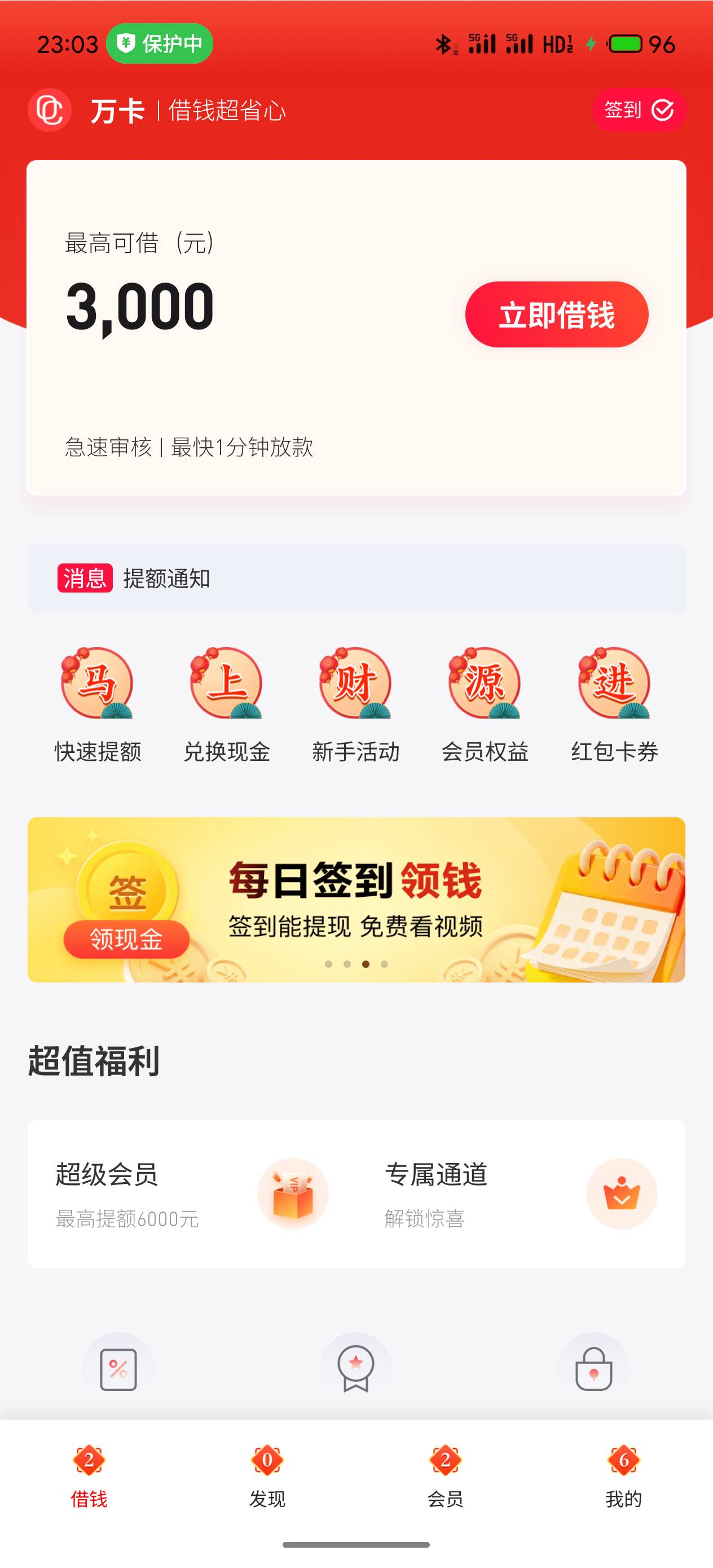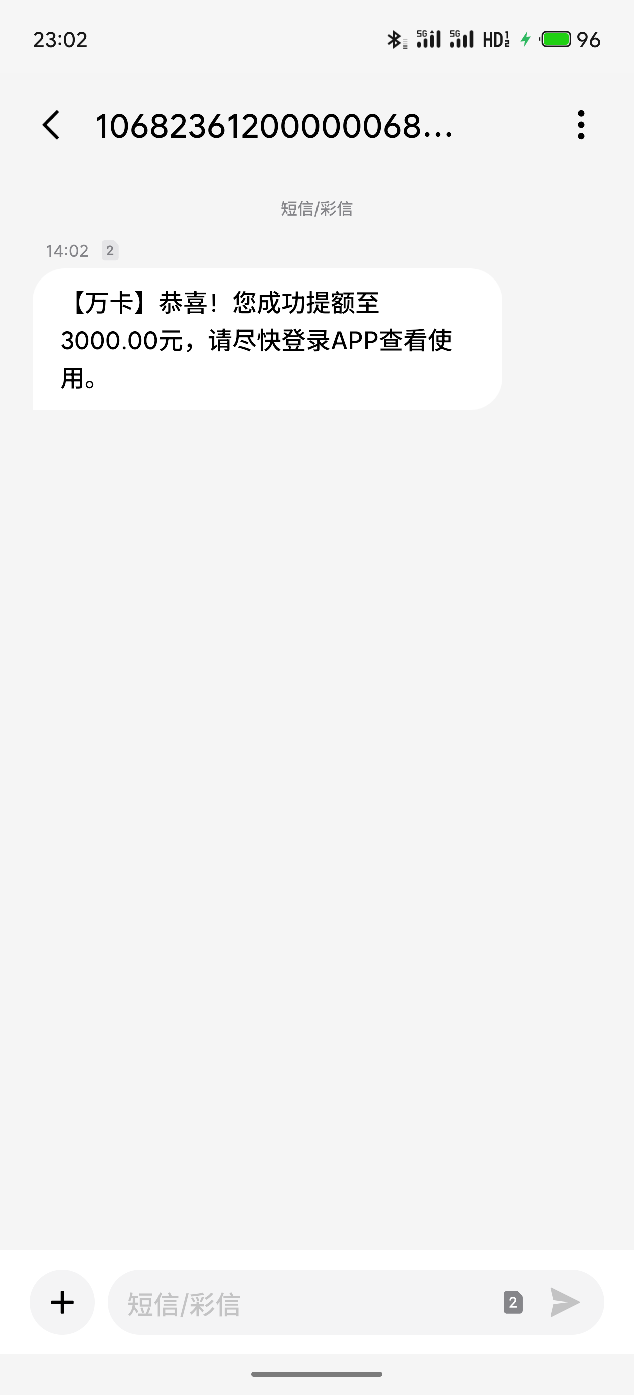 万卡来个短信3000,能借吗?