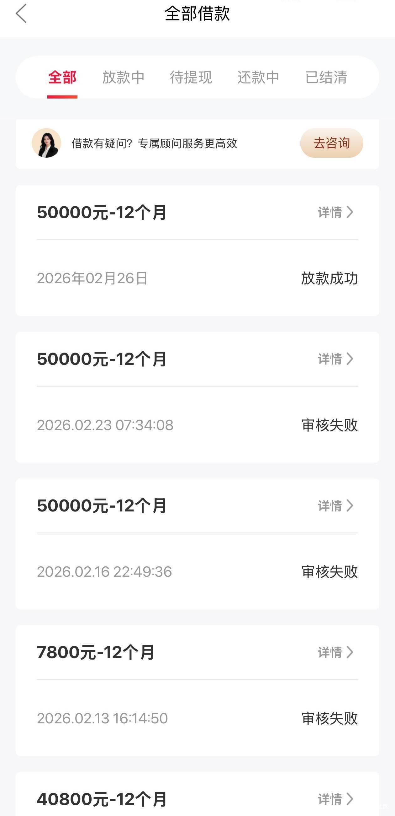 万卡下款了,去年11月开始就不下,最近三天一拒,今天早上刚好又是三天显示拒了,但是