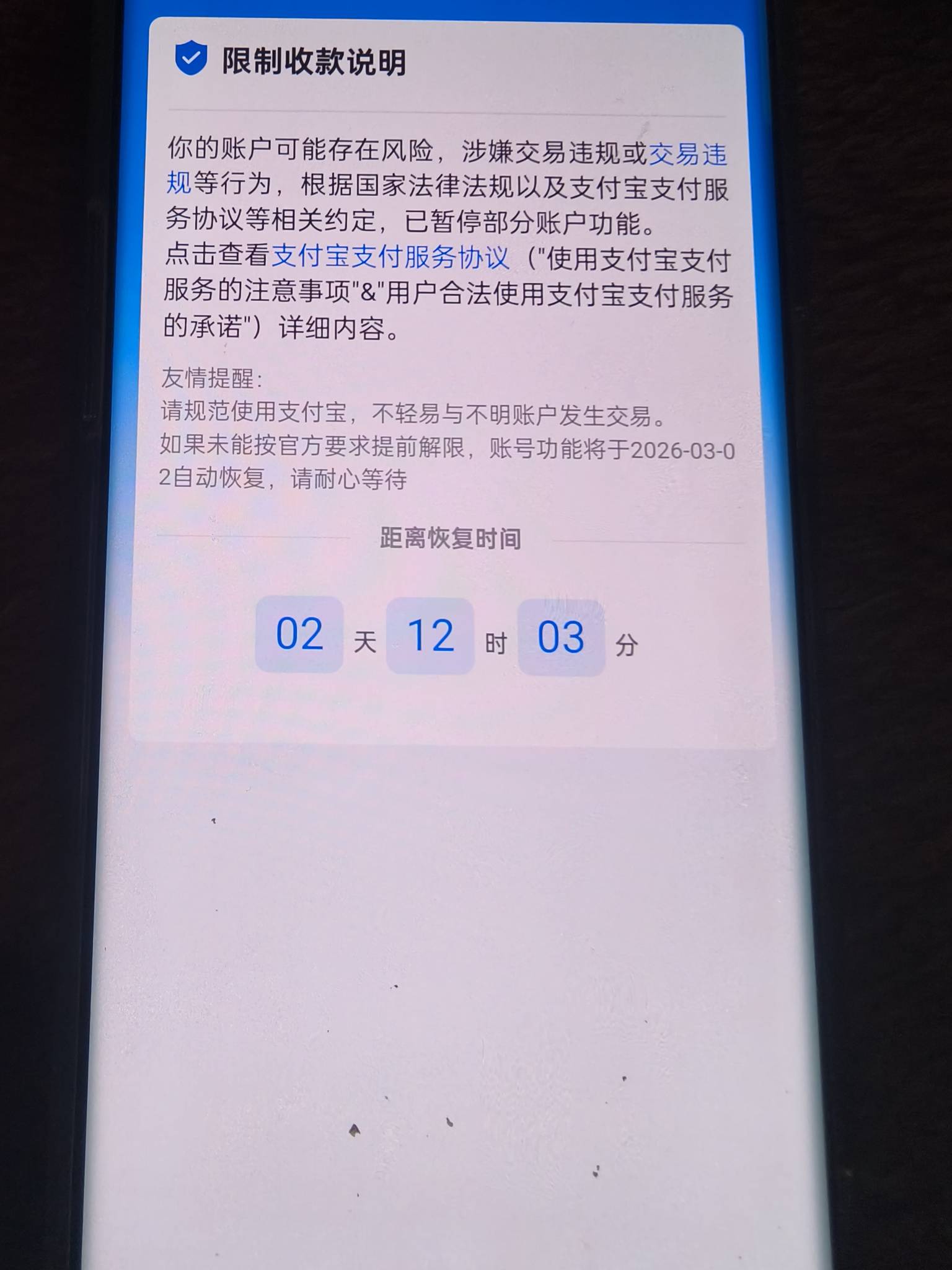 离我这么近 发表于 2026-02-28 09:47 现在越来越远严格了,这个月一次性收了一万多,支付宝号收款功能给我限制15天