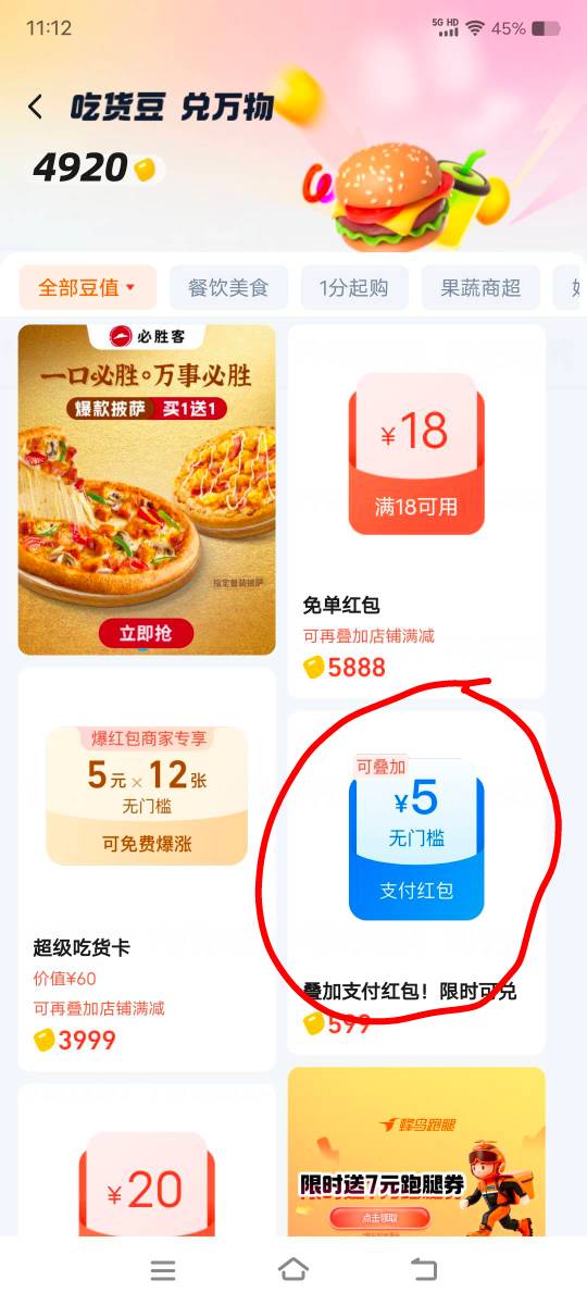 淘宝闪购搜索.免单红包.下方页面兑换5毛红包,点外卖多减5毛