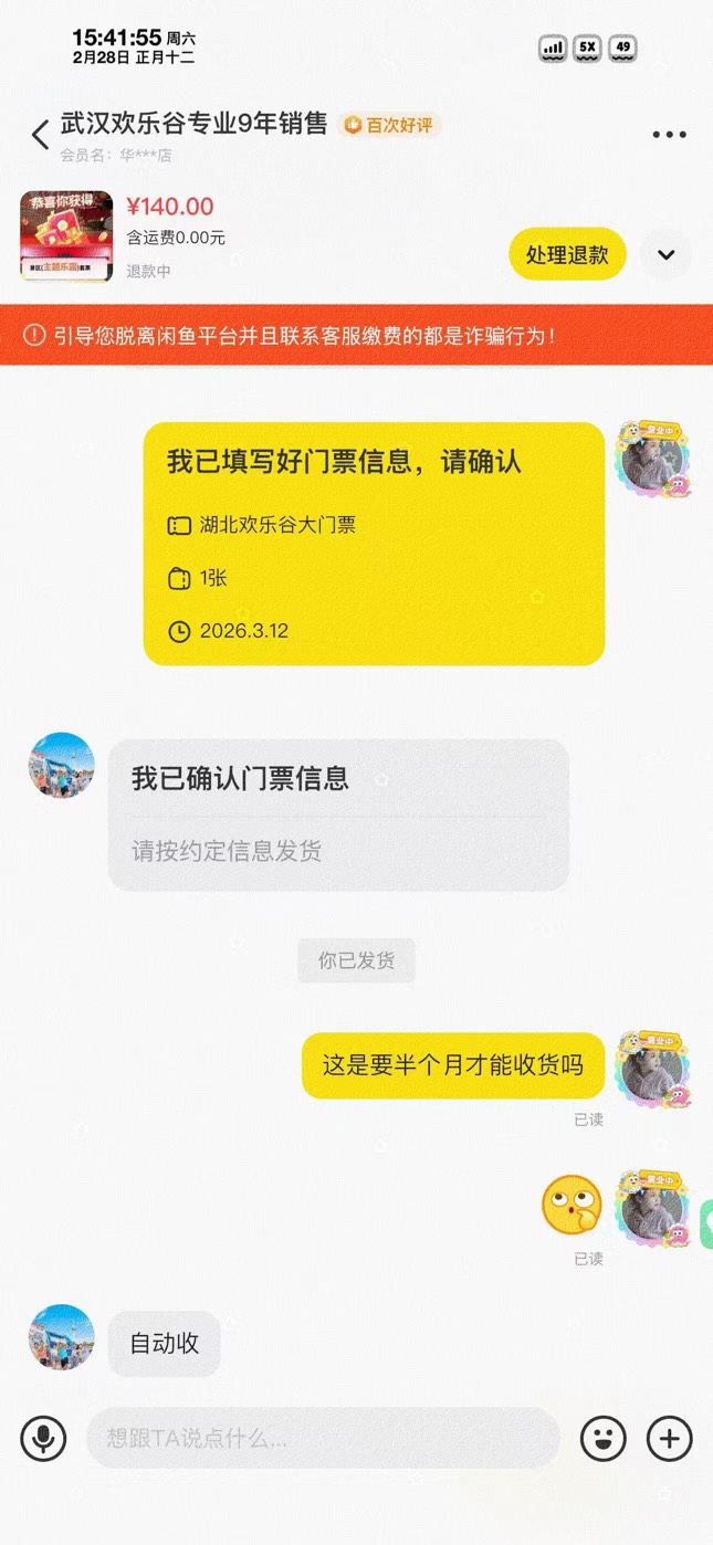 冬天的第一场雪 发表于 2026-02-28 15:45 他自己叫我发货让我填门票过期的最后一天,然后又跟我说他点不了