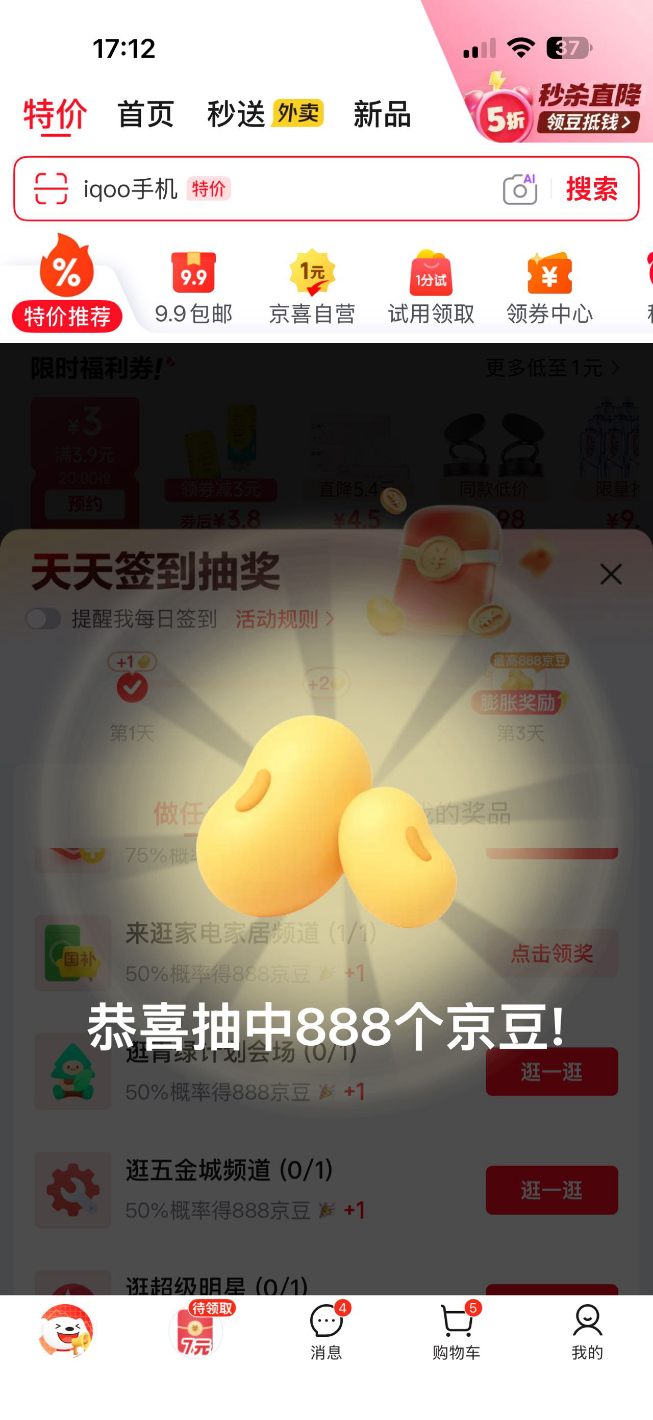 京东首页特价这个位置所以任务点一下返回就行,多号拉满刚中888豆