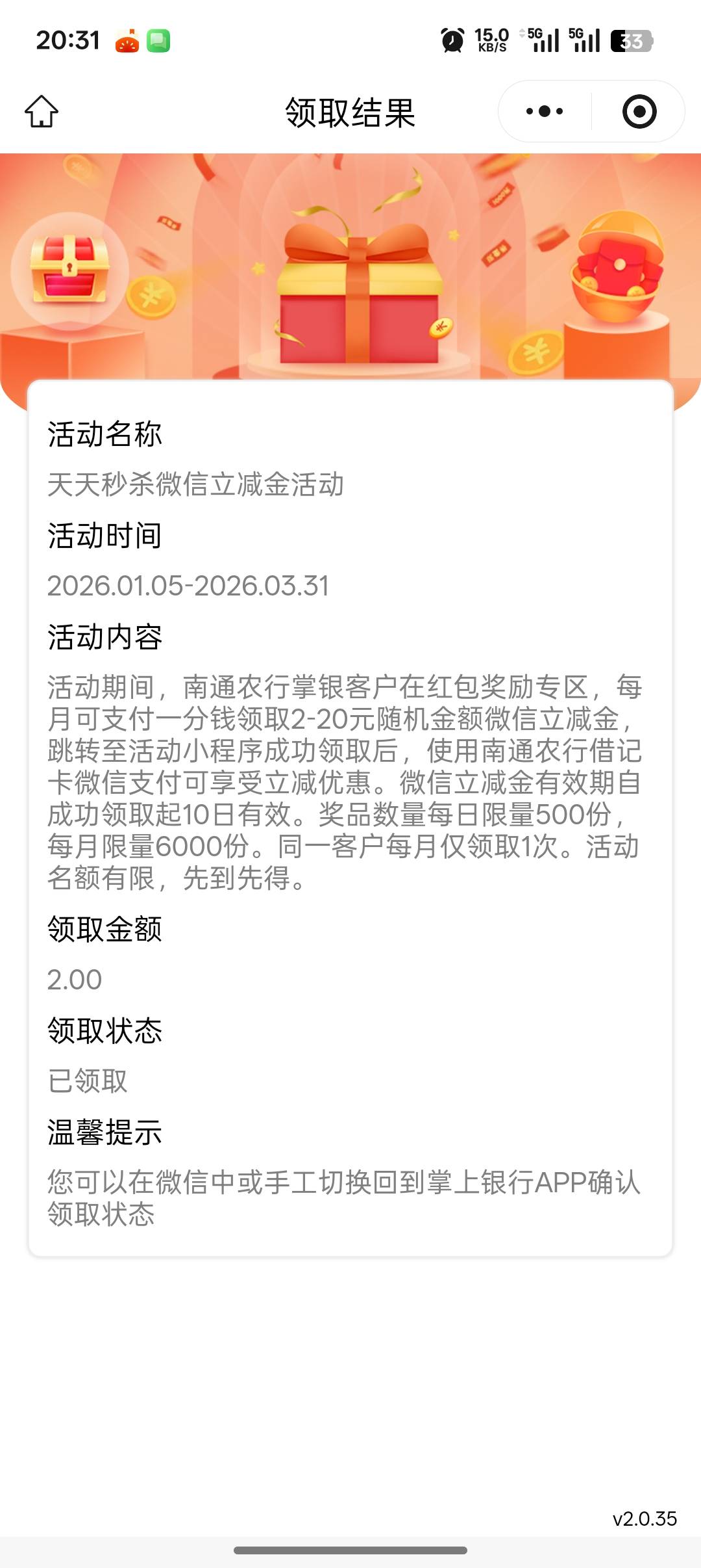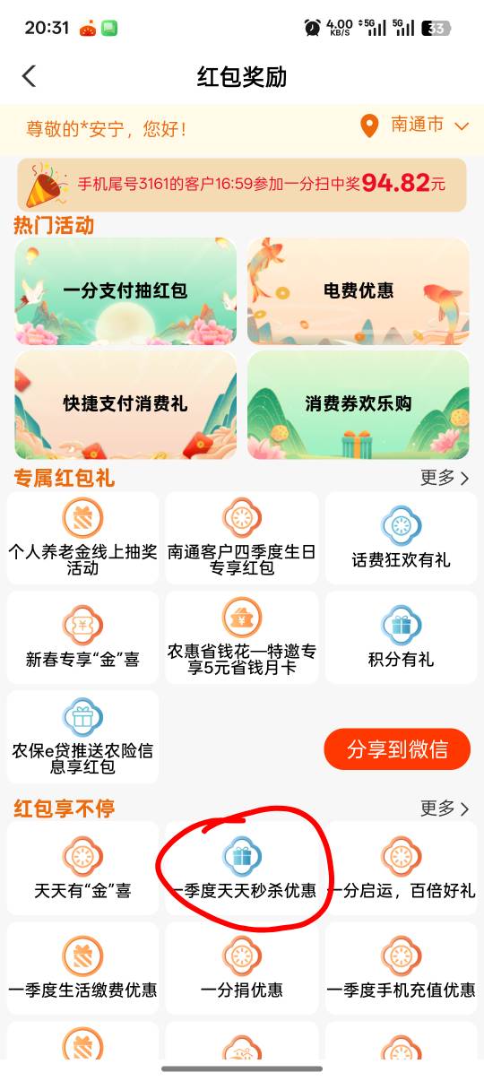 农行江苏一季度天天秒杀优惠抽奖活动