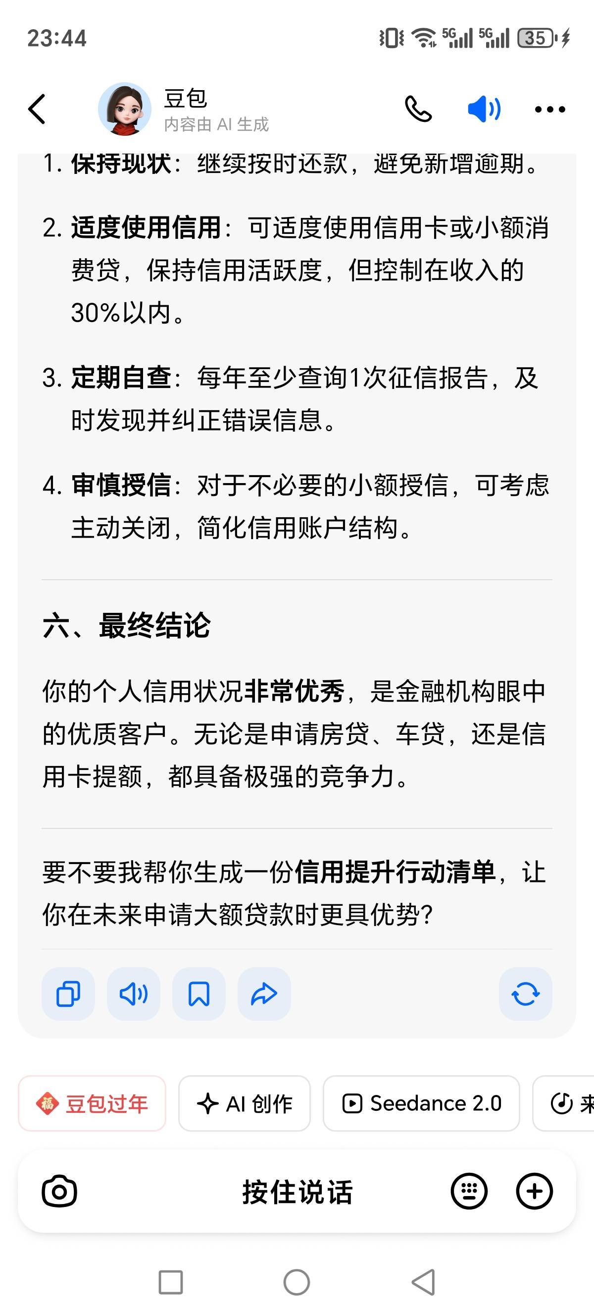 今天去银行打了一份详细征信报告,看不懂,豆包帮忙分析的,准备做农商银行贷款了,六