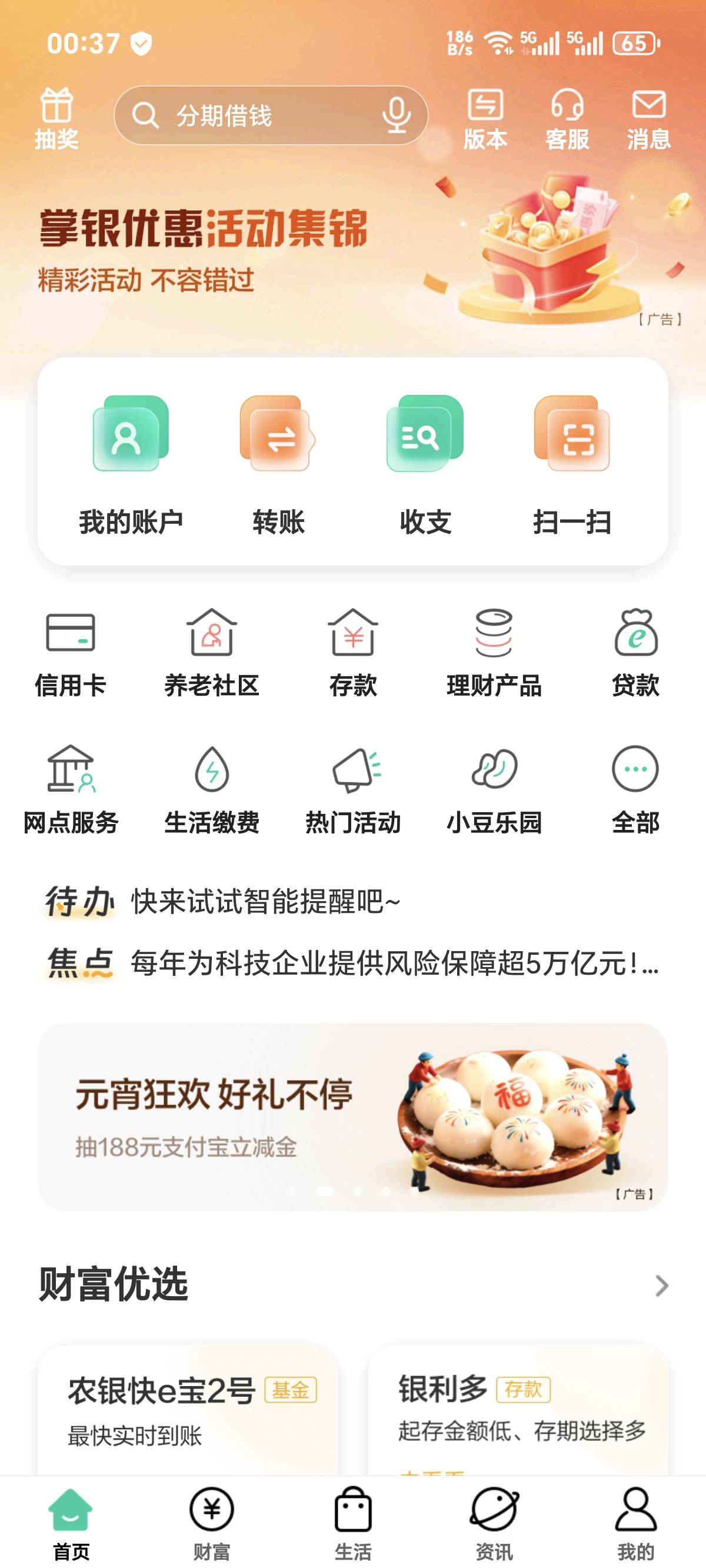 农行首页中间横幅 元宵夜抽188立减金
