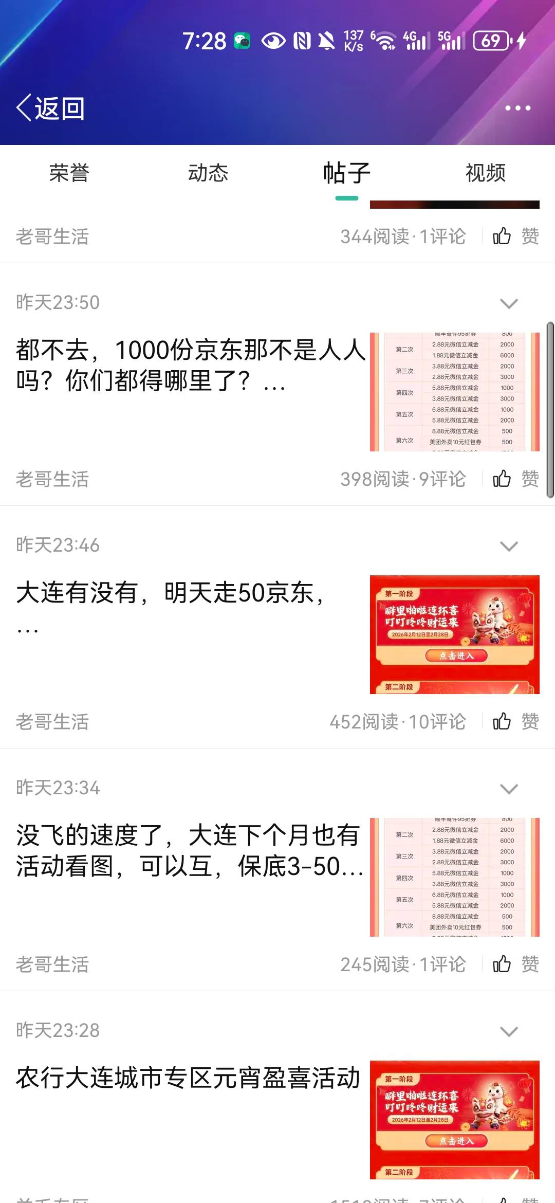 他最早发的第一个贴,只收头,飞一次5。