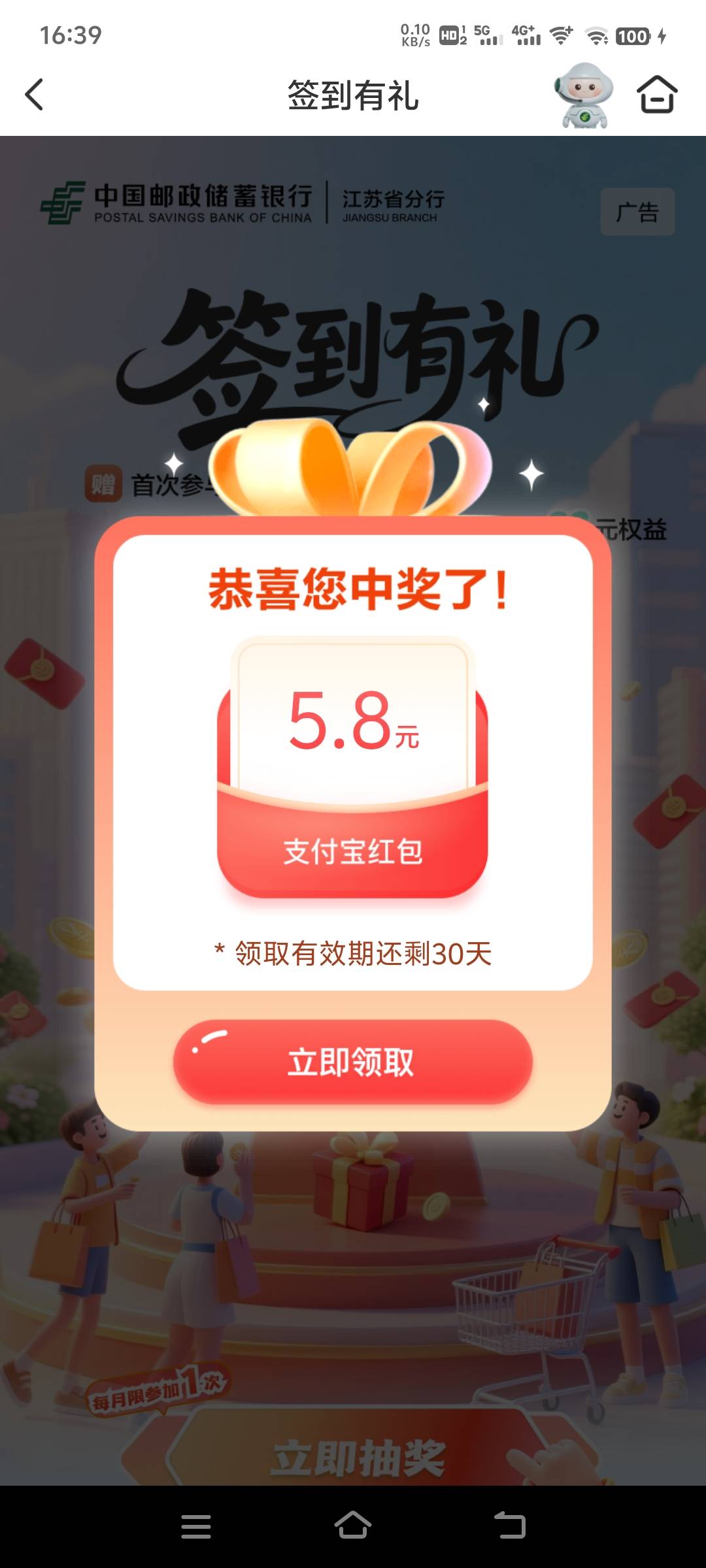 邮储江苏本地服务签到有礼活动