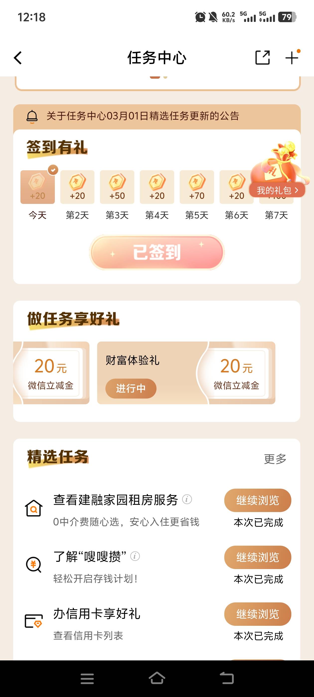 建行还是可以的,任务中心风险评测20,财富体验礼20+建粤有礼里面的财富体验二期5