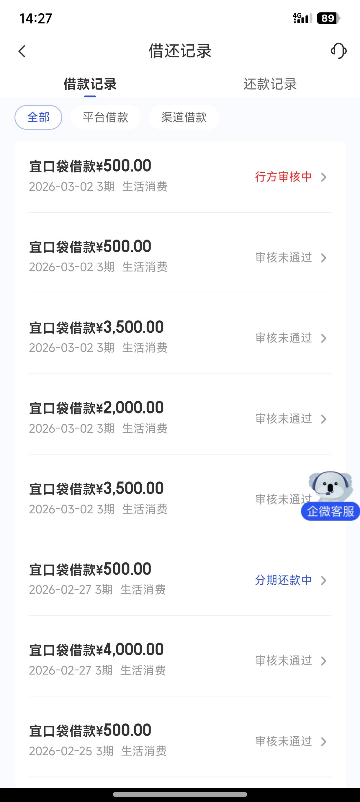 宜口袋第8次下款500元,秒充500微信,一般看到这个红色.行方审核中.就是百分百下款了。