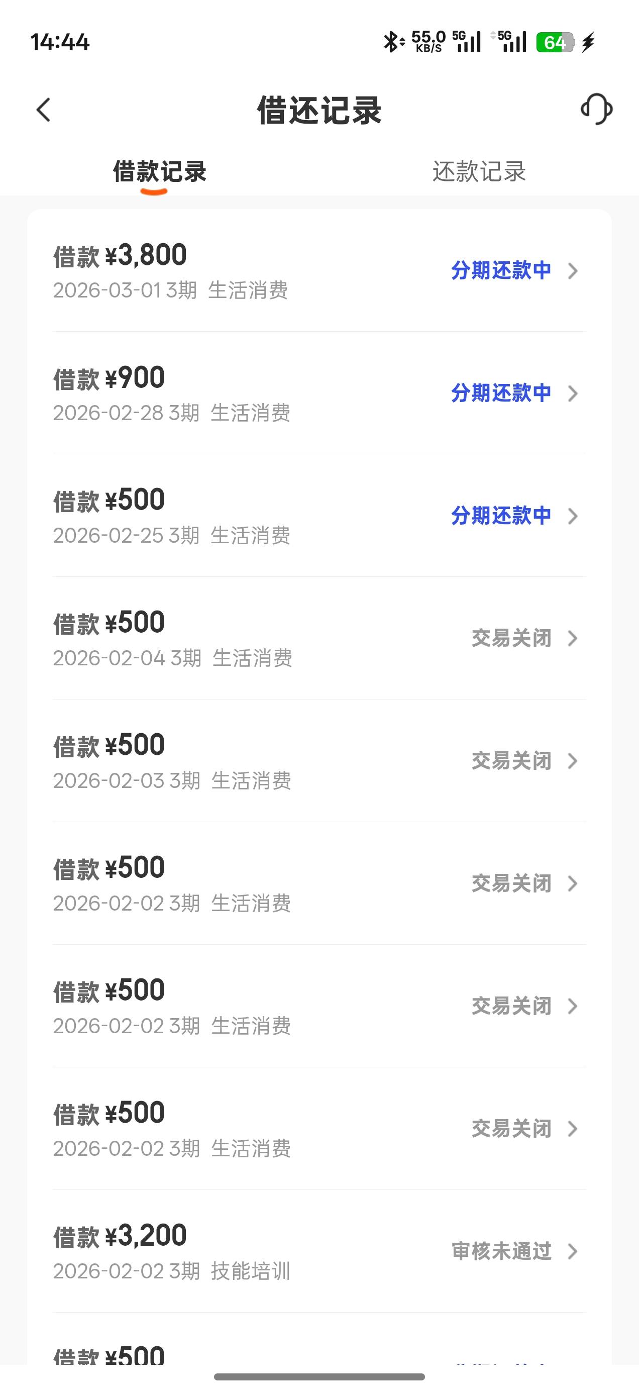 我借了8次500元,每次都是一跳先用后付56元,就能下款,都是500元,准备要还款了,要全面逾期了,这几天能借就都借了,逾期应该不让借了