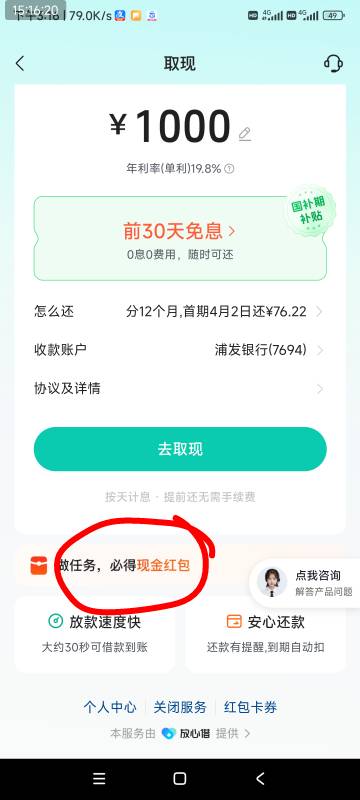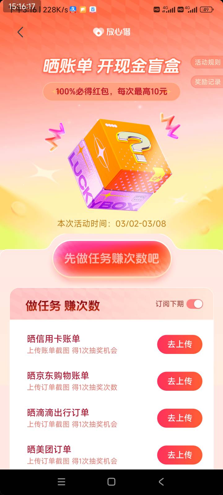 抖音放心借晒账单开现金盲盒活动