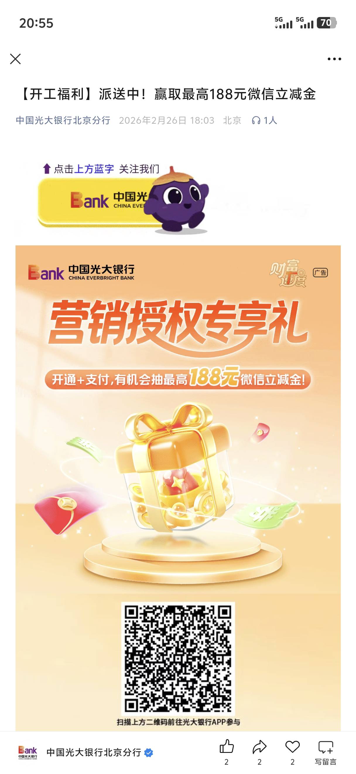 光大银行营销服务通知限时礼遇活动