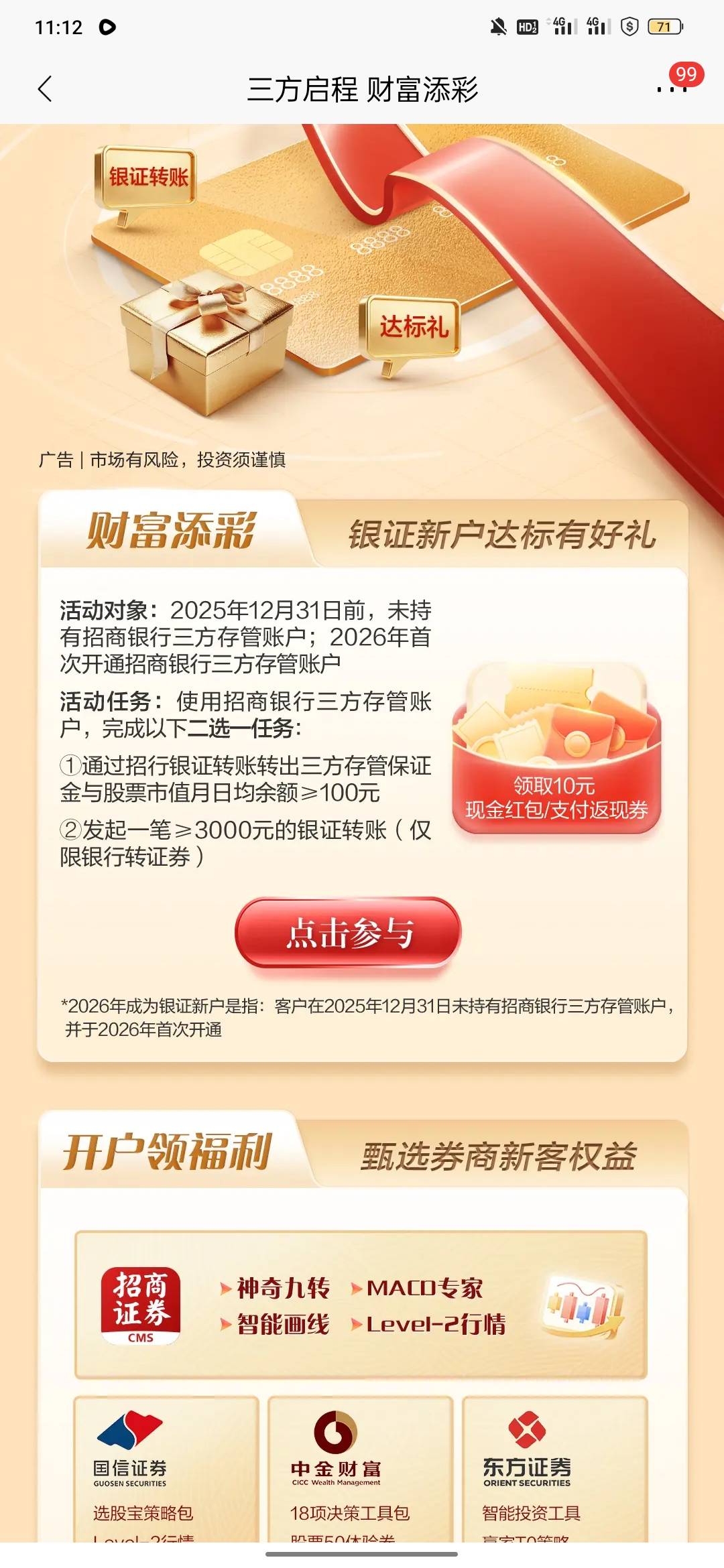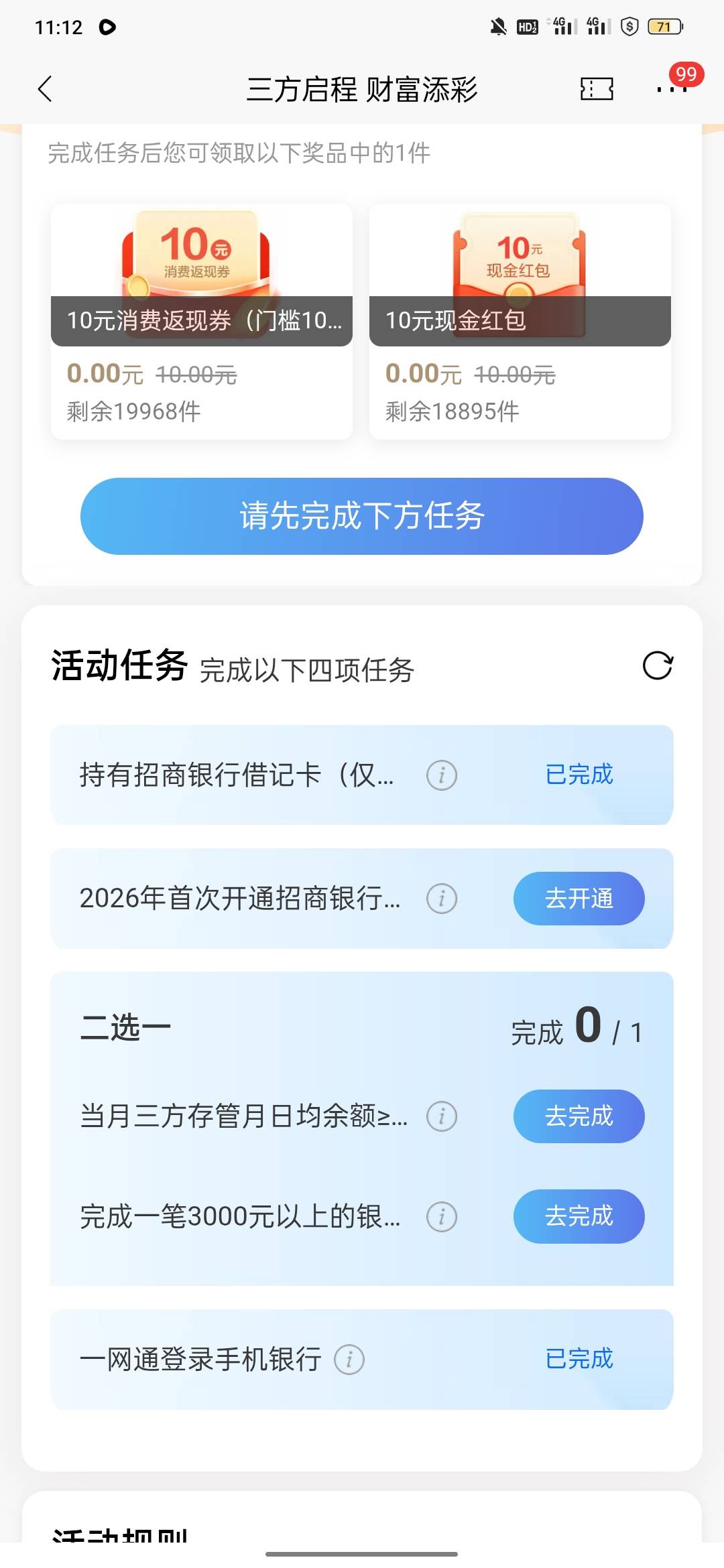 寂寞卡农开无主 发表于 2026-03-03 12:03 大清毛,招商银证转账3k才能领10毛,楼主的40毛怎么算的,你数学谁教的?