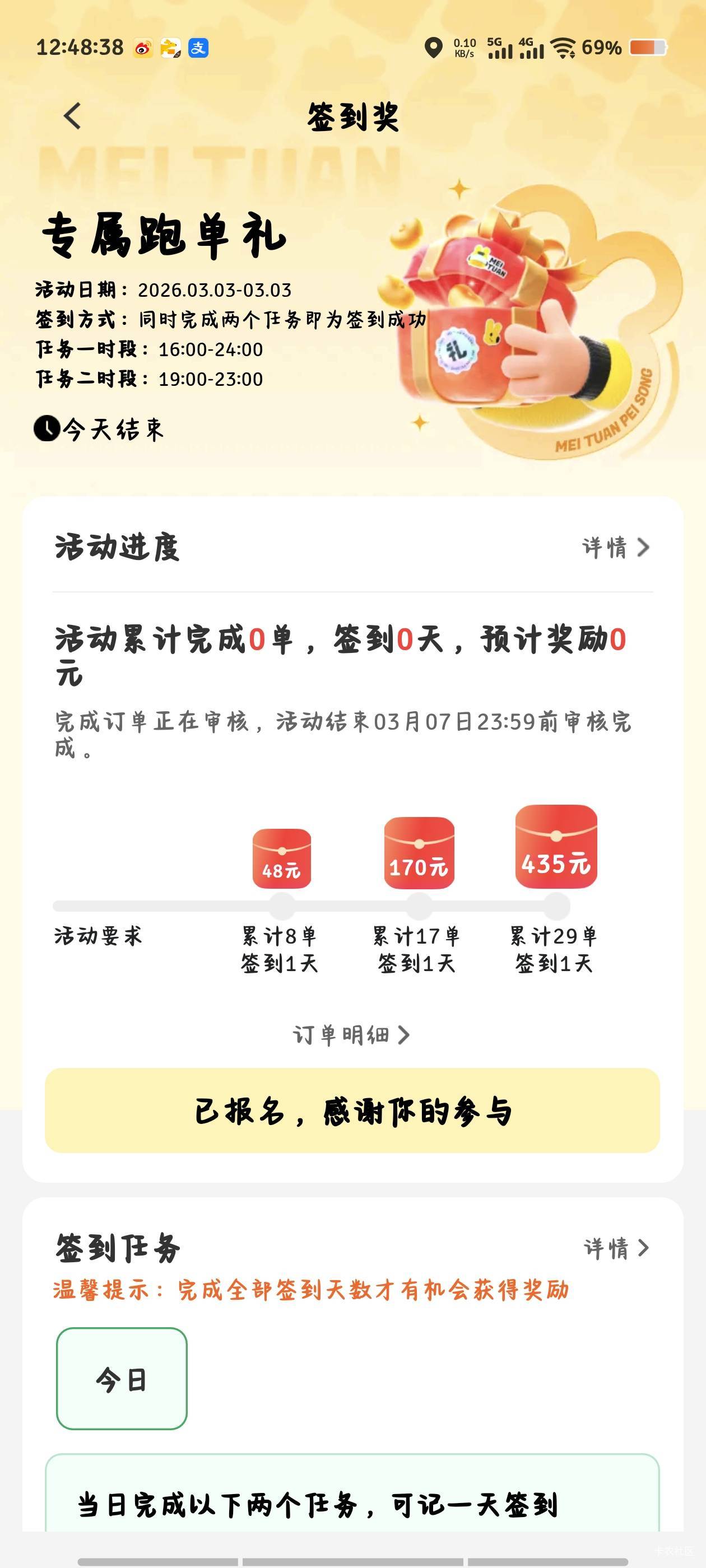 我也有活动,但是根本完不成,带任务的单很少,要不然就是来回七八公里的五六块钱