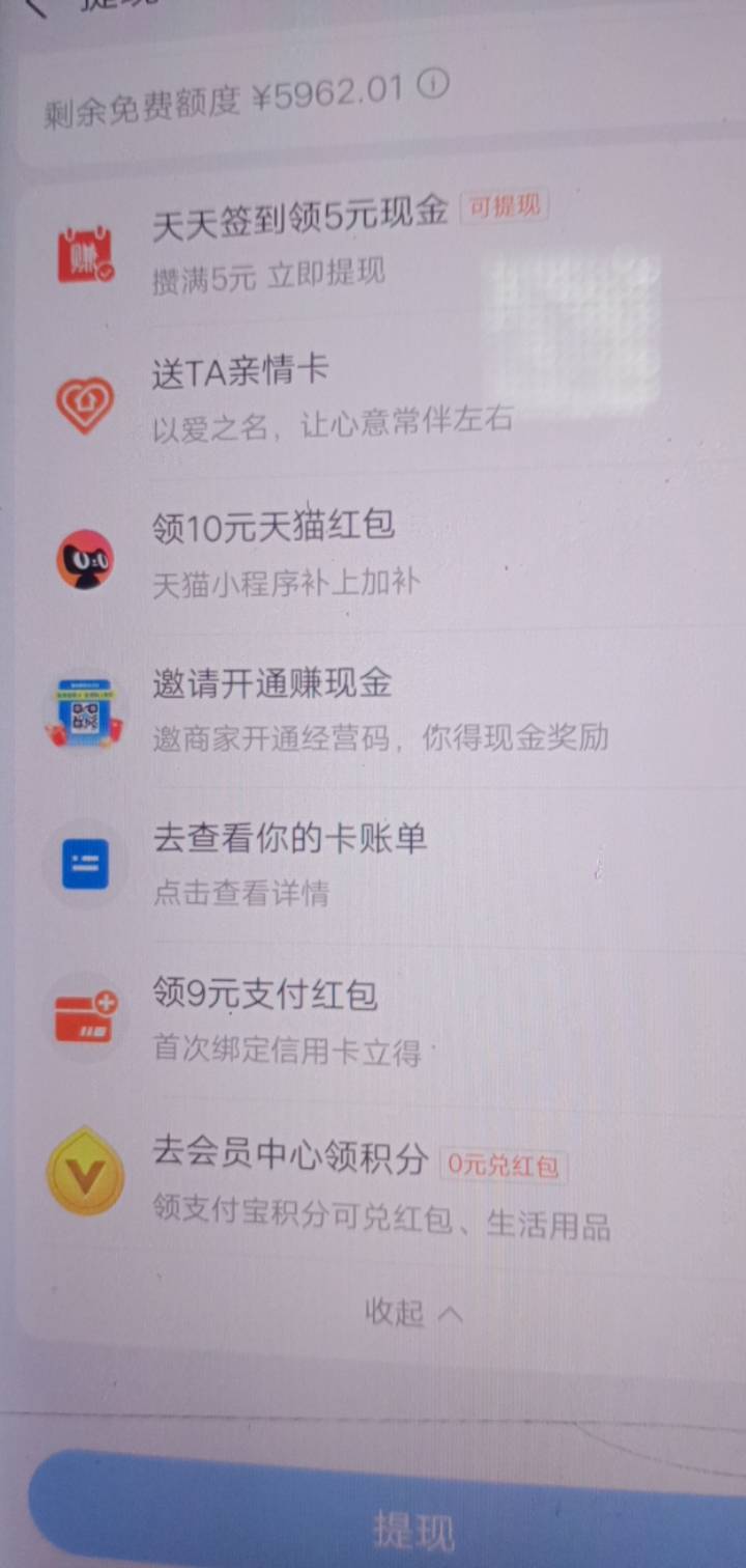 支付宝余额提现下拉,信用卡九元红包又更新了,每天没事瞅一眼