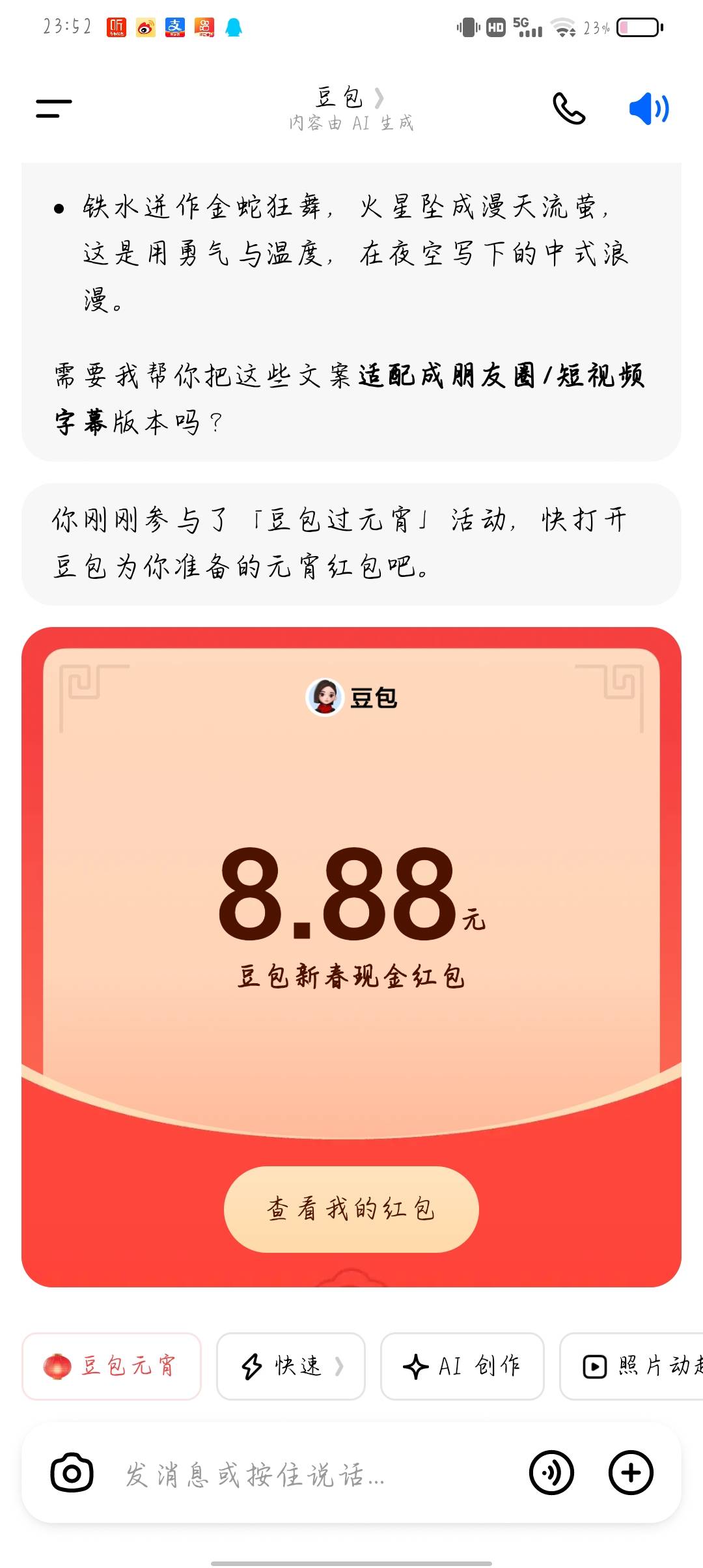 1块钱怎么好意思发呢 有没有领到大包的