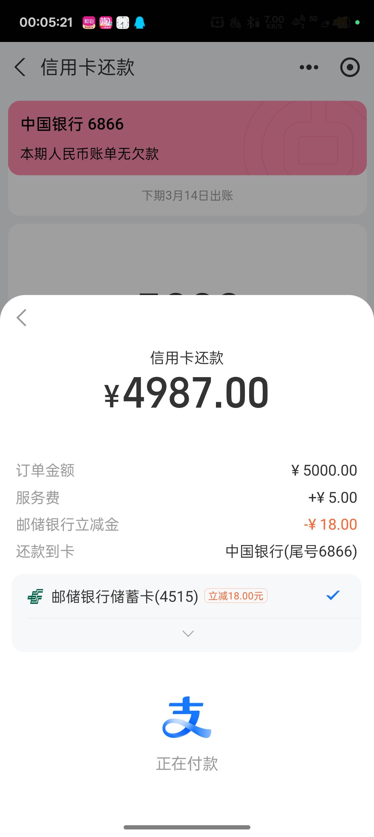厦门邮储信用卡还款5000-18