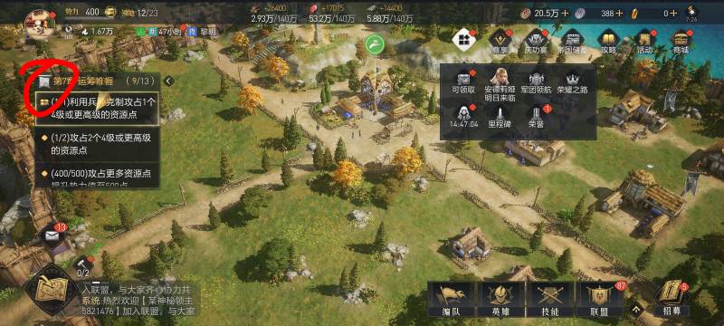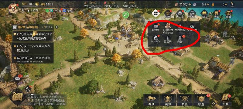tiamisu01 发表于 2026-03-04 07:28 在社区搜索找链接,然后用老号下载换最新区互通996区,然后打到8级城镇,领取回归2红包,然后链接页面邀请小号,跟着左边的任务做,中途右上角有宝箱就领取,右上角荣誉只领取木头,做到第7章就去升级城镇,没木头了记得点右上角倒计时的这个进去领取木头,到8就城镇就退出,小号点邀请链接进去助力完成
