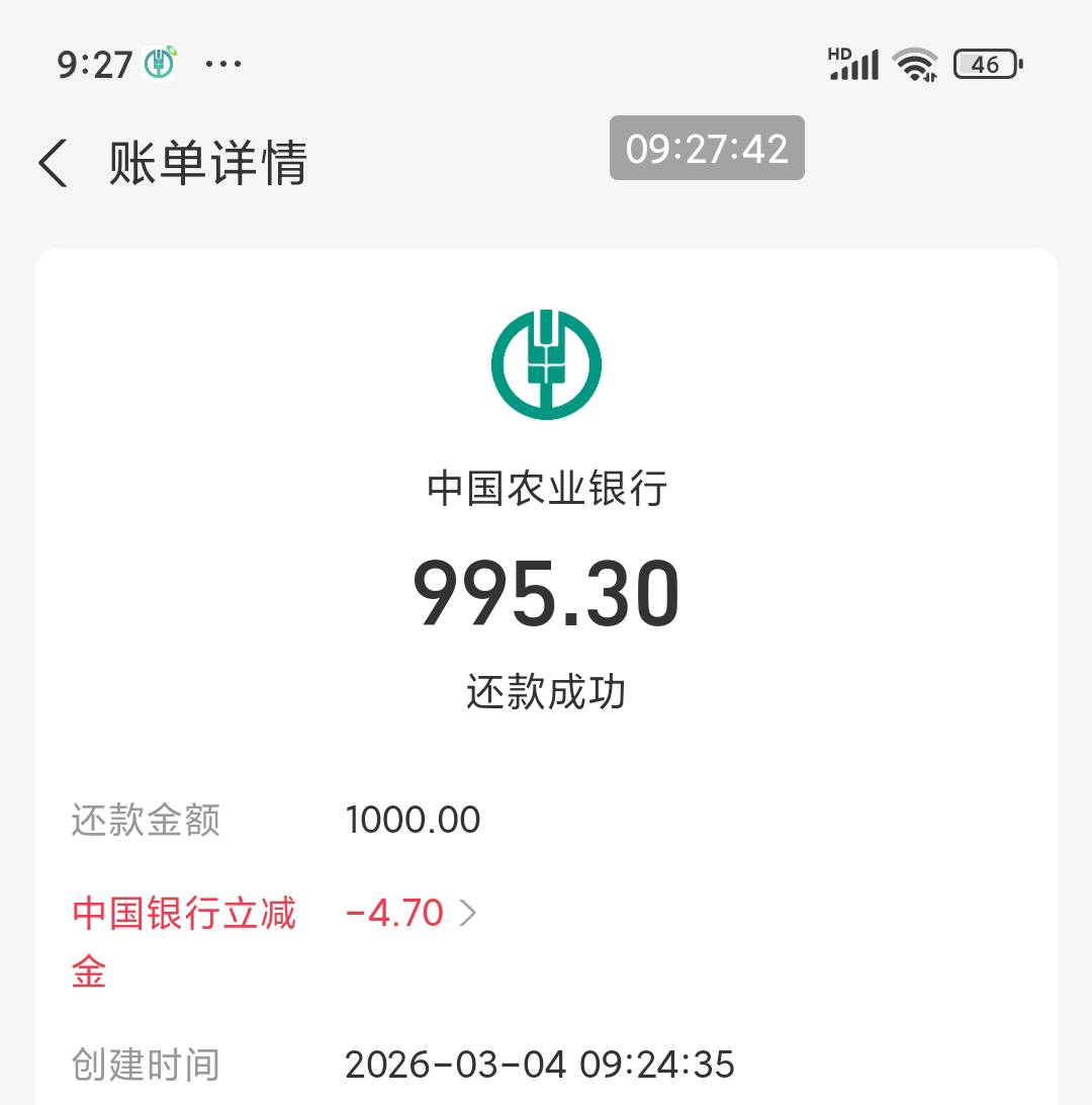 支付宝信用卡还款广州中行1000-4.7