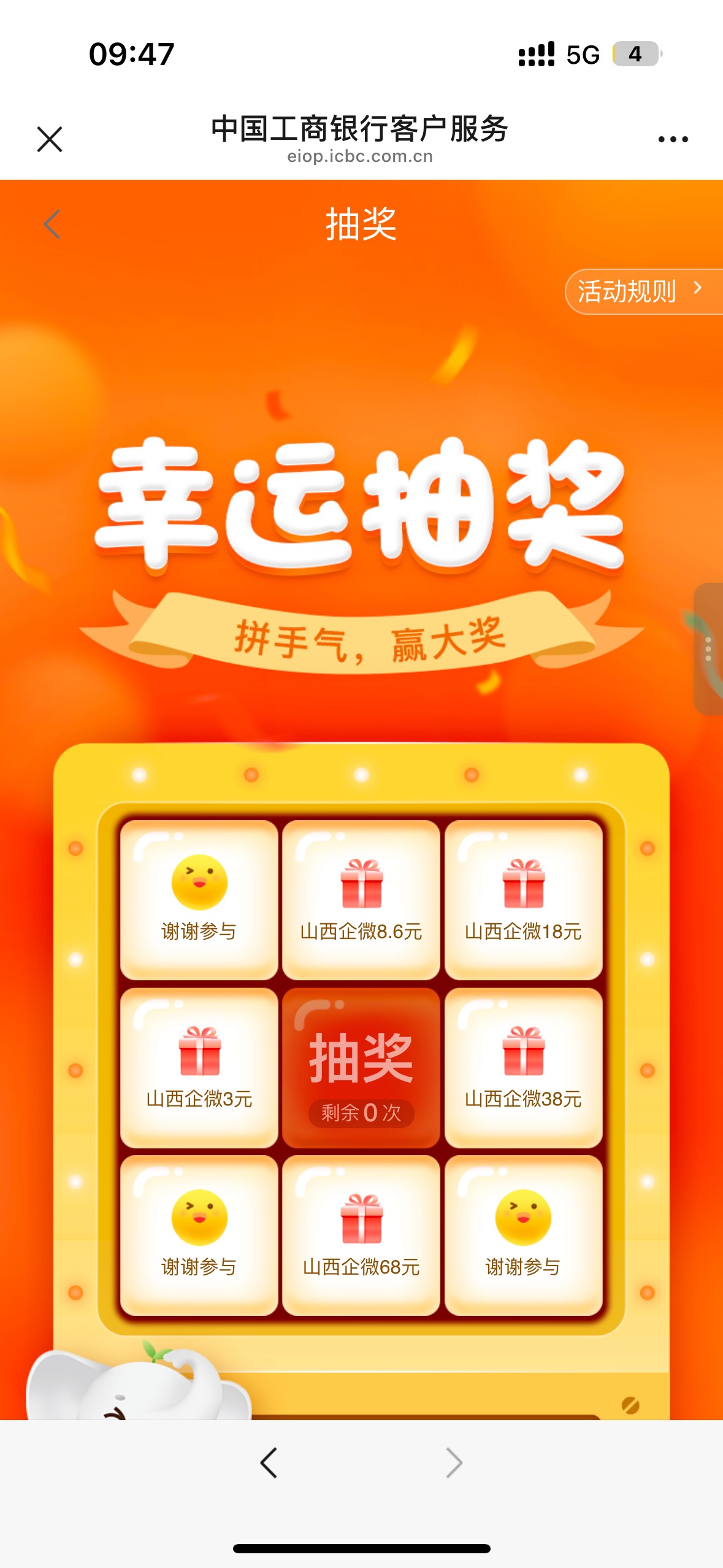 工行山西企微新客认证礼幸运抽奖活动